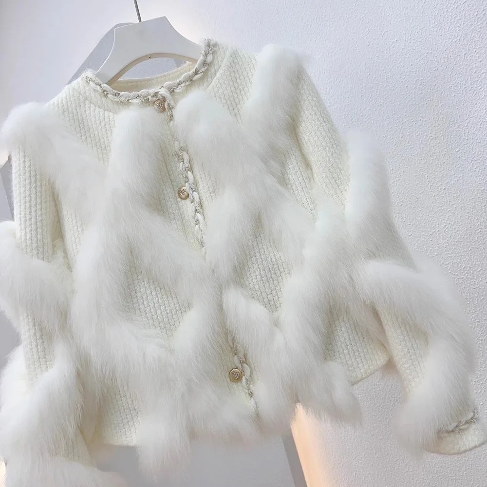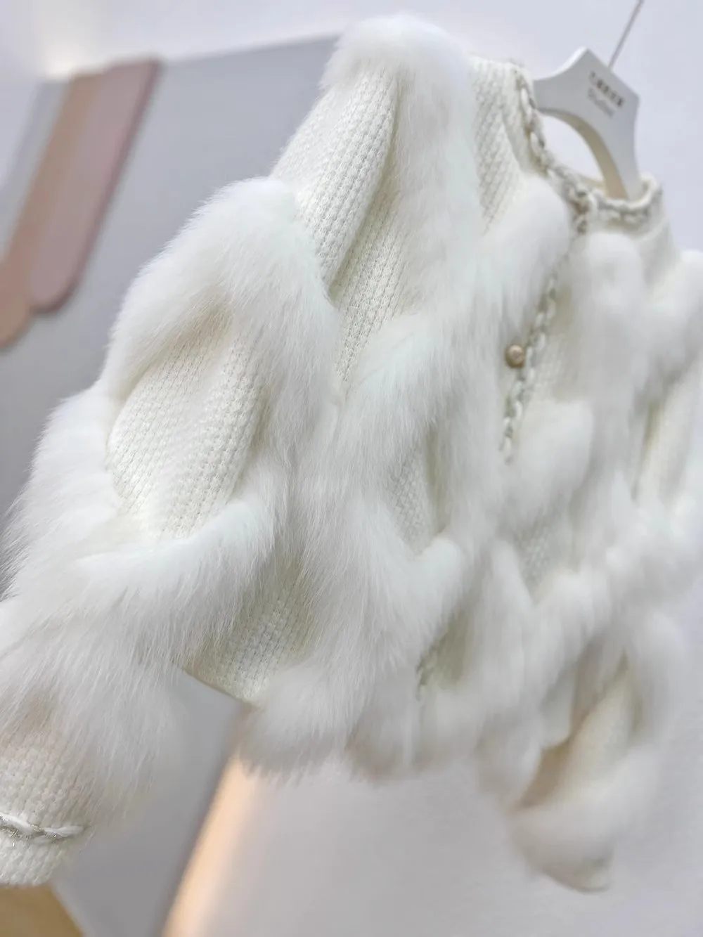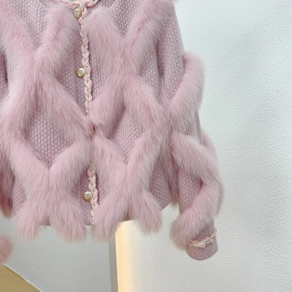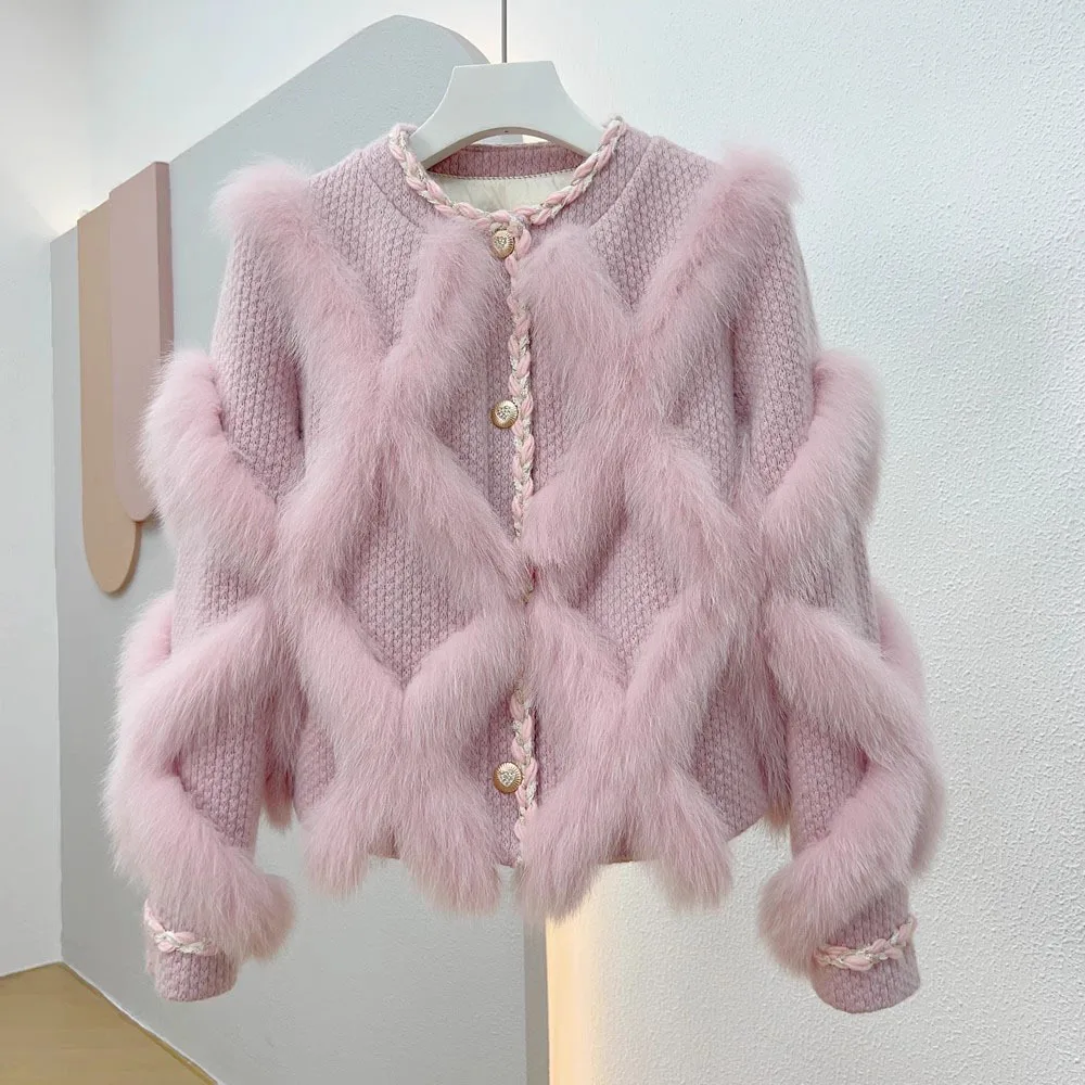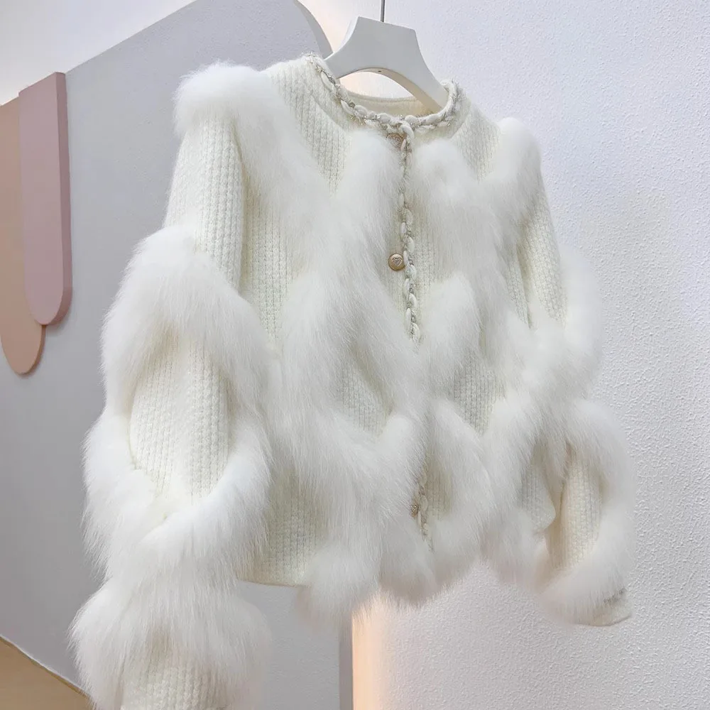 2023 New Short Fox Fur Coat Women's Small Sweet Style Slimming Coat