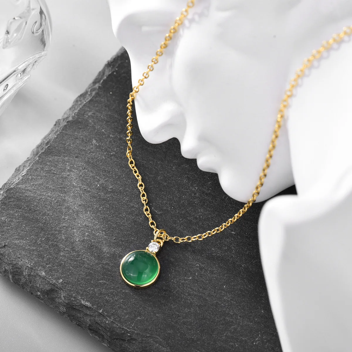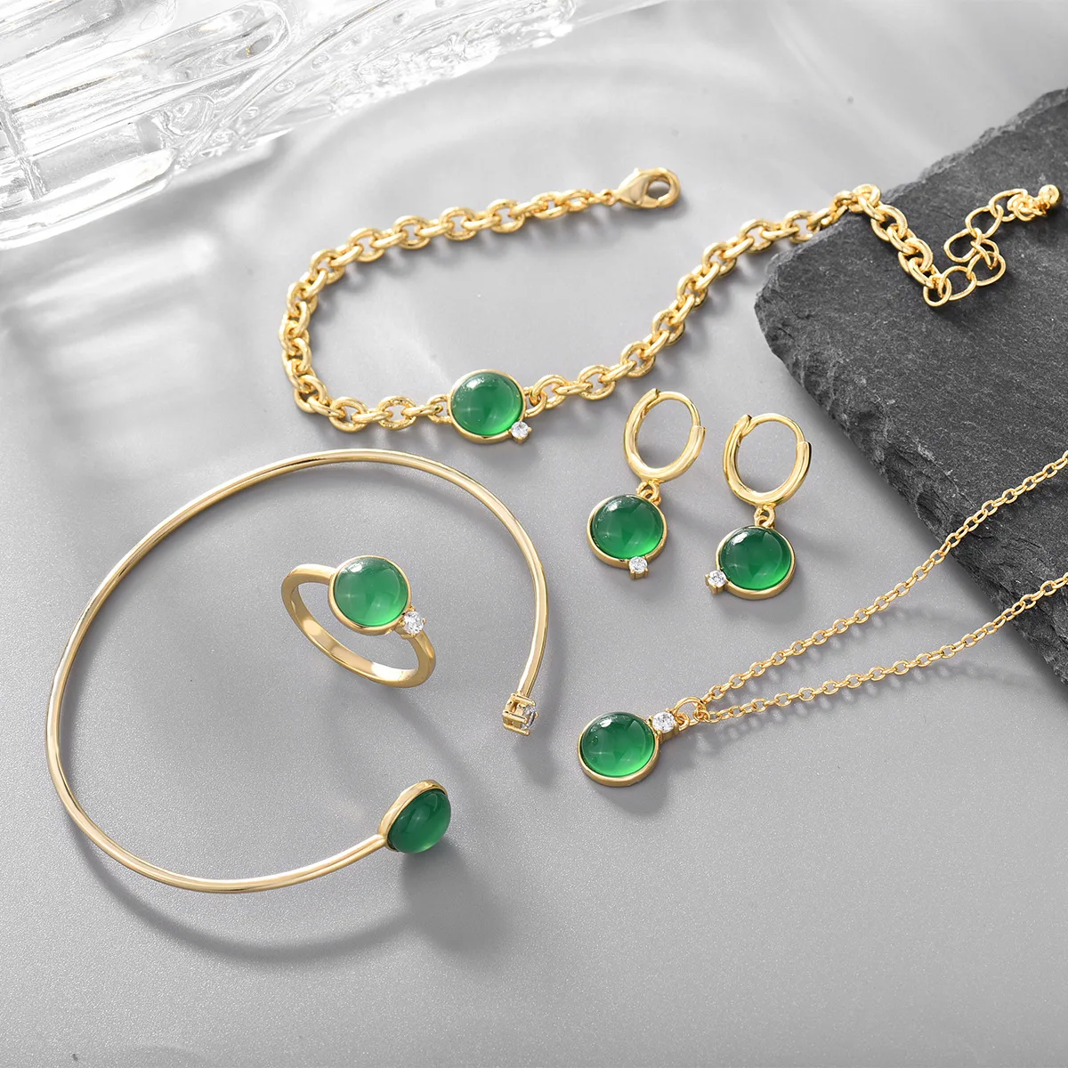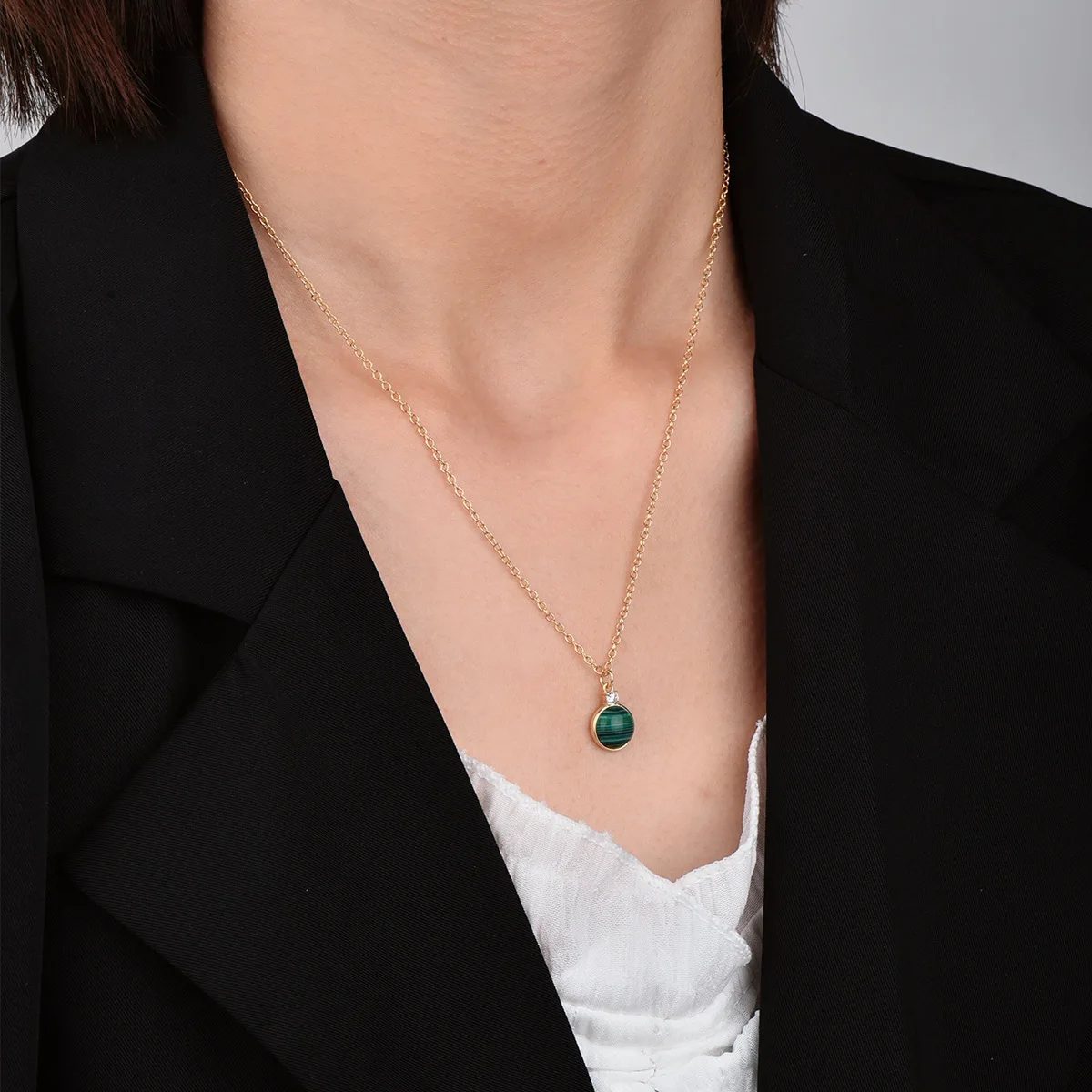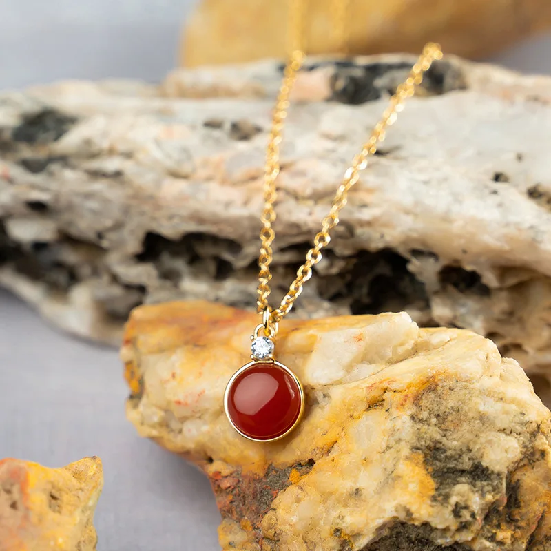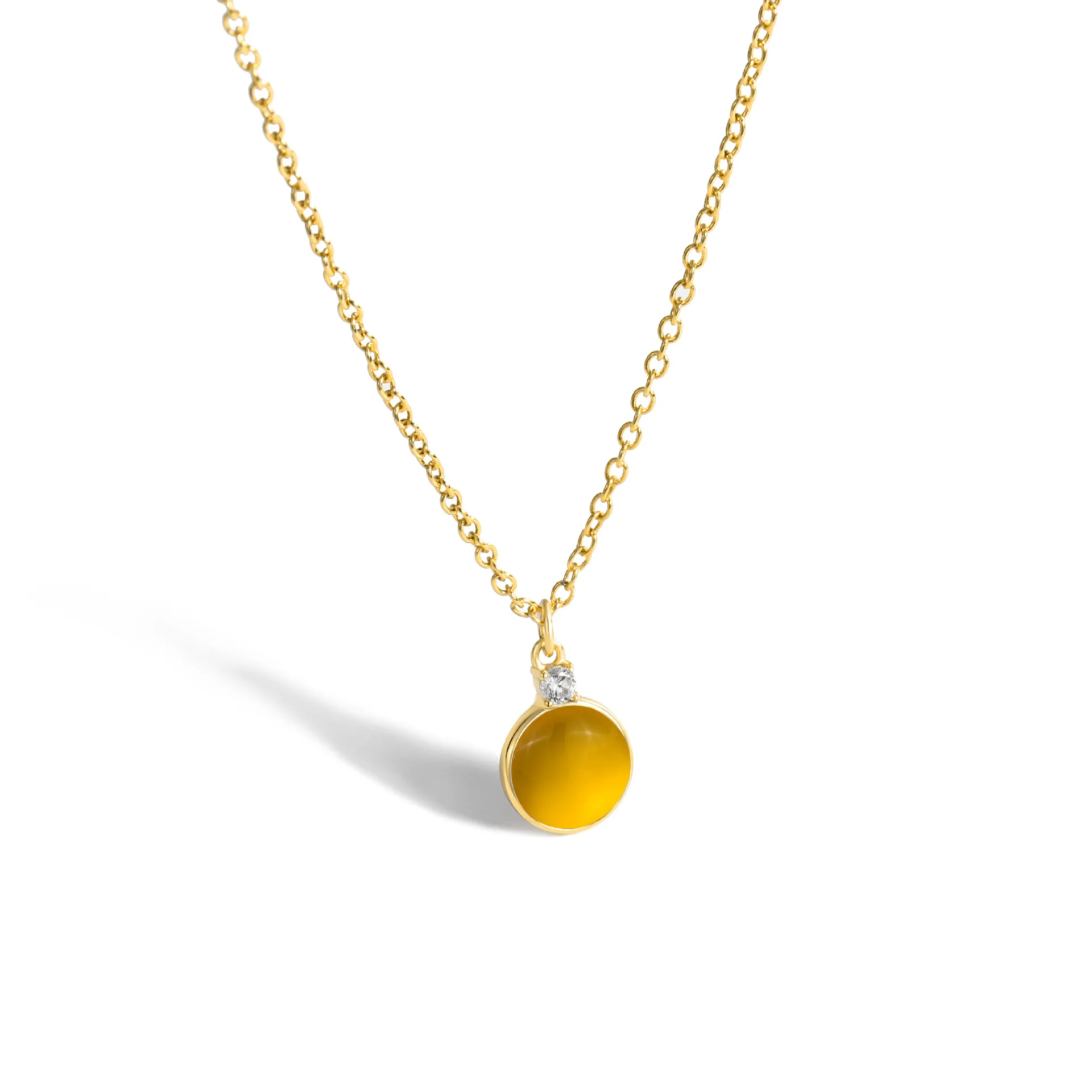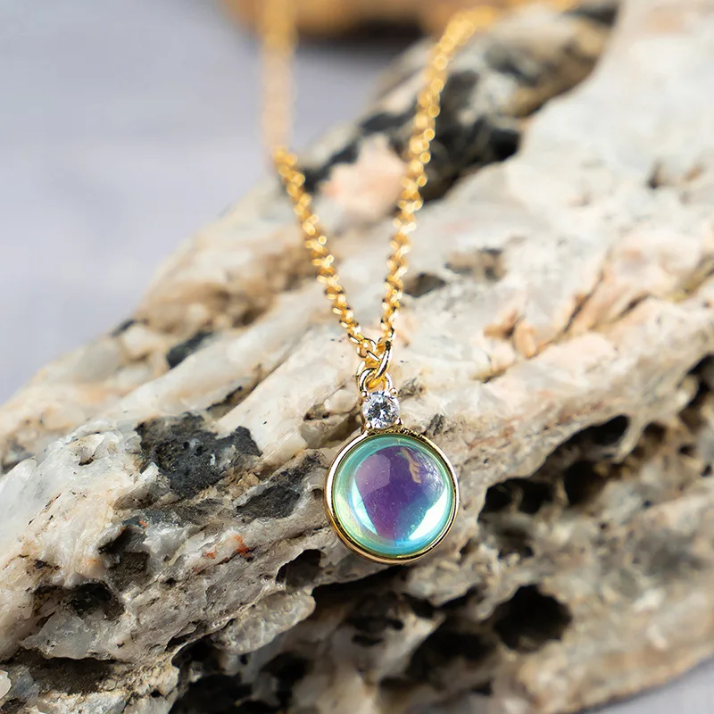 2023 New Simple Fashion Multicolor Round Gemstone Necklace Copper Plated Gold Jewelry