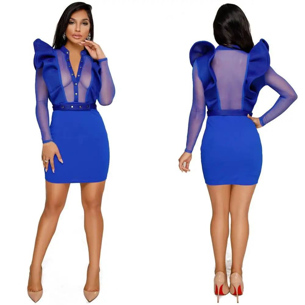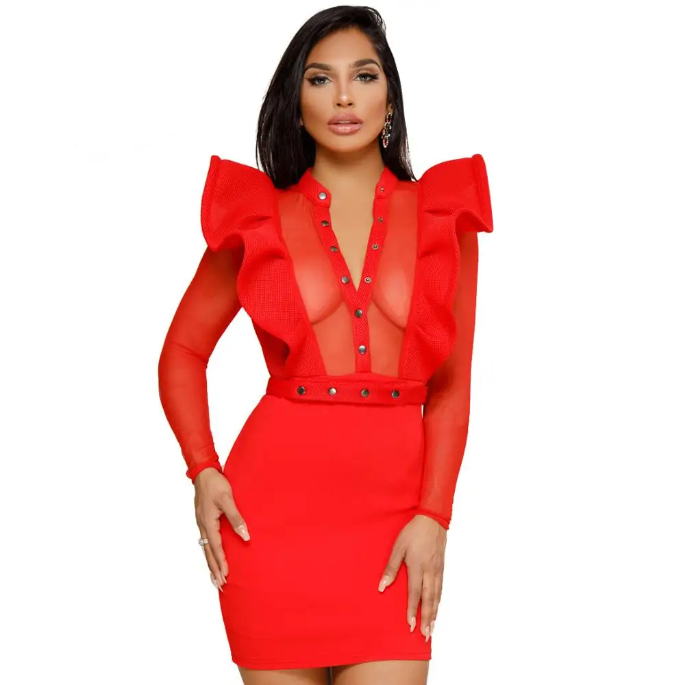 2023 New Summer See Through Deep-V Sexy Butterfly Sequin Sleeves Chiffon Bodycon Mini Dress