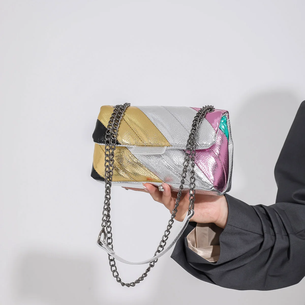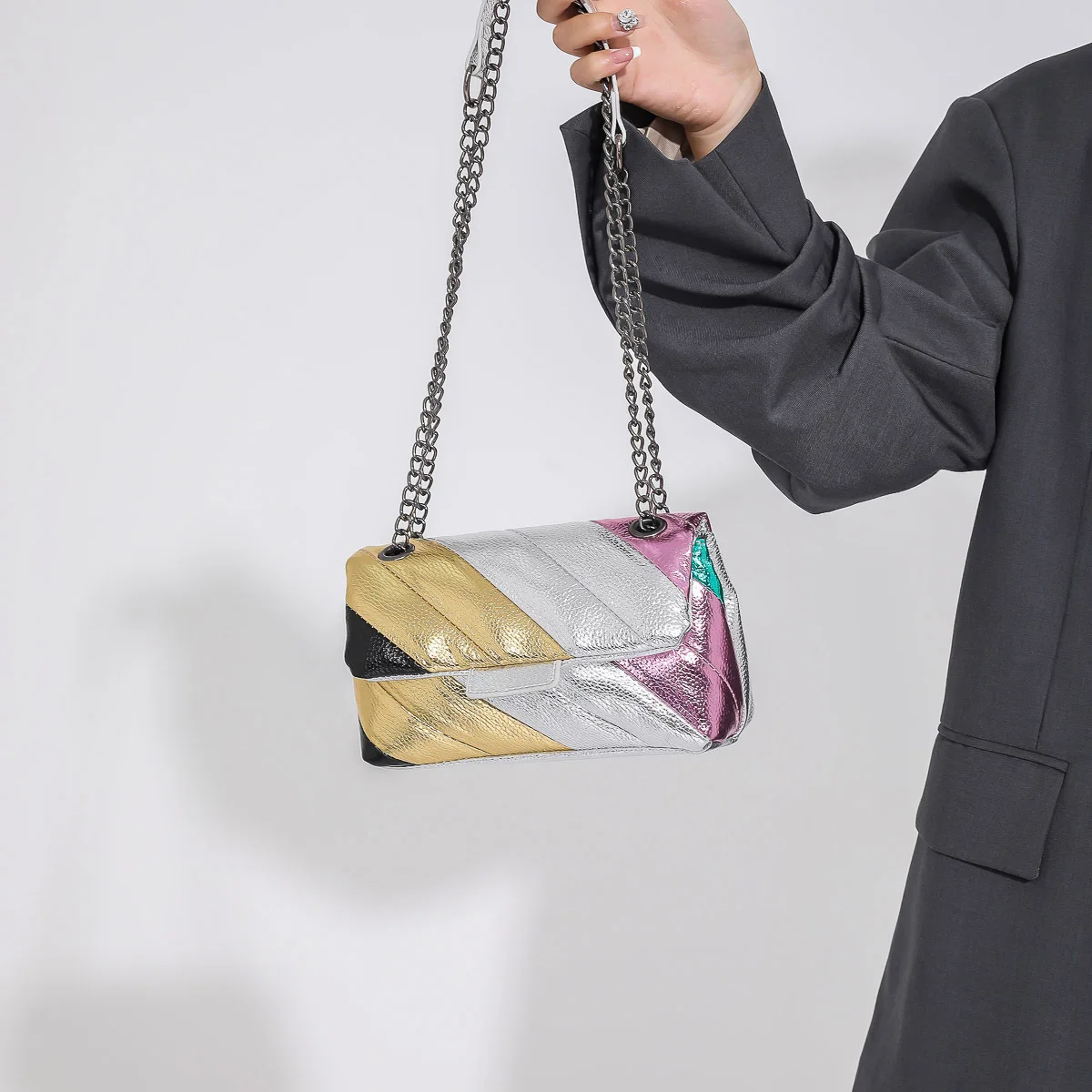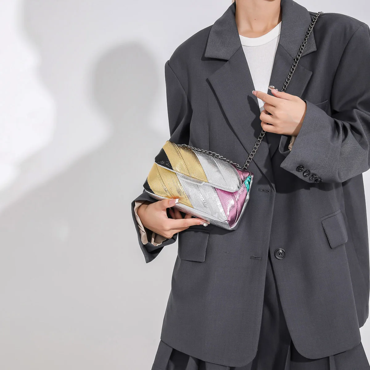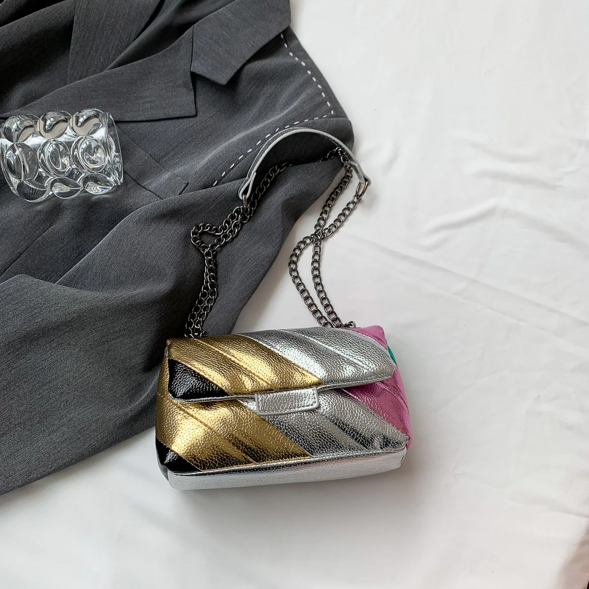 2023 New UK Brand Rainbow Women Handbag Luxury Wave Pattern Crossbody Body Bag Colorful Patchwork Shoulder Bag