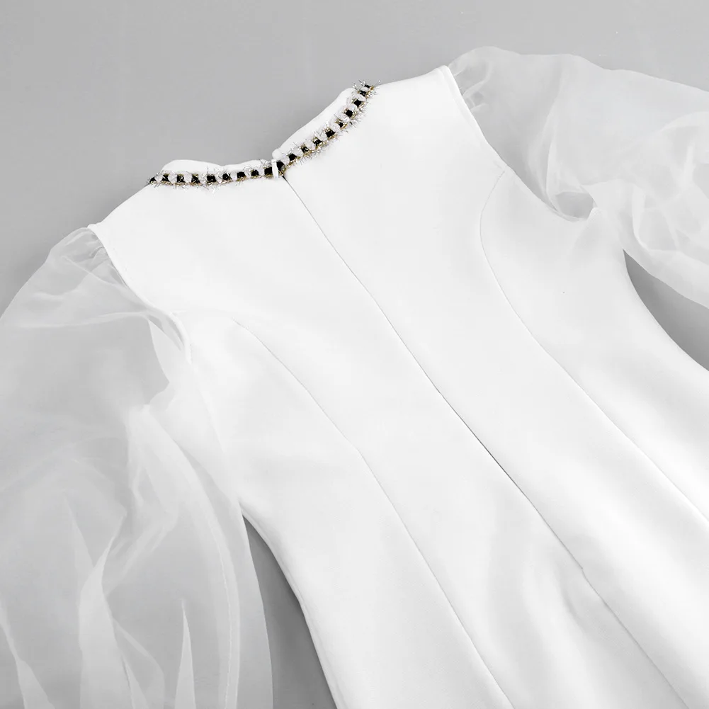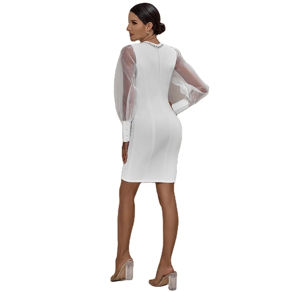 2023 New V Neck Bandage Dress Gauze Long Sleeve Elegant Bodycon Evening Dresses Fashion Party Wrap Hip Sexy Vestidos for Woman