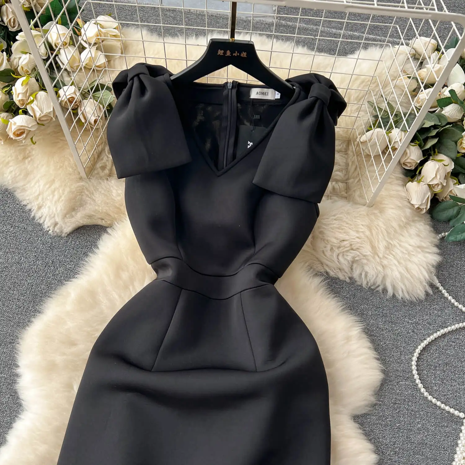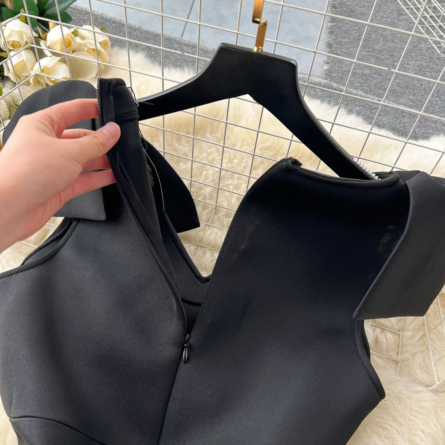 2023 New V-neck Sleeveless Bow Dress Designer Model Mesh Dress