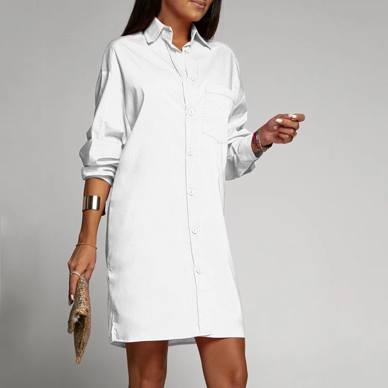 2023 New Women Shirt Mid-Length Cardigan Top Shrink Resistant Breathable Chic Buttons Closure Solid Color Fashion Shirt