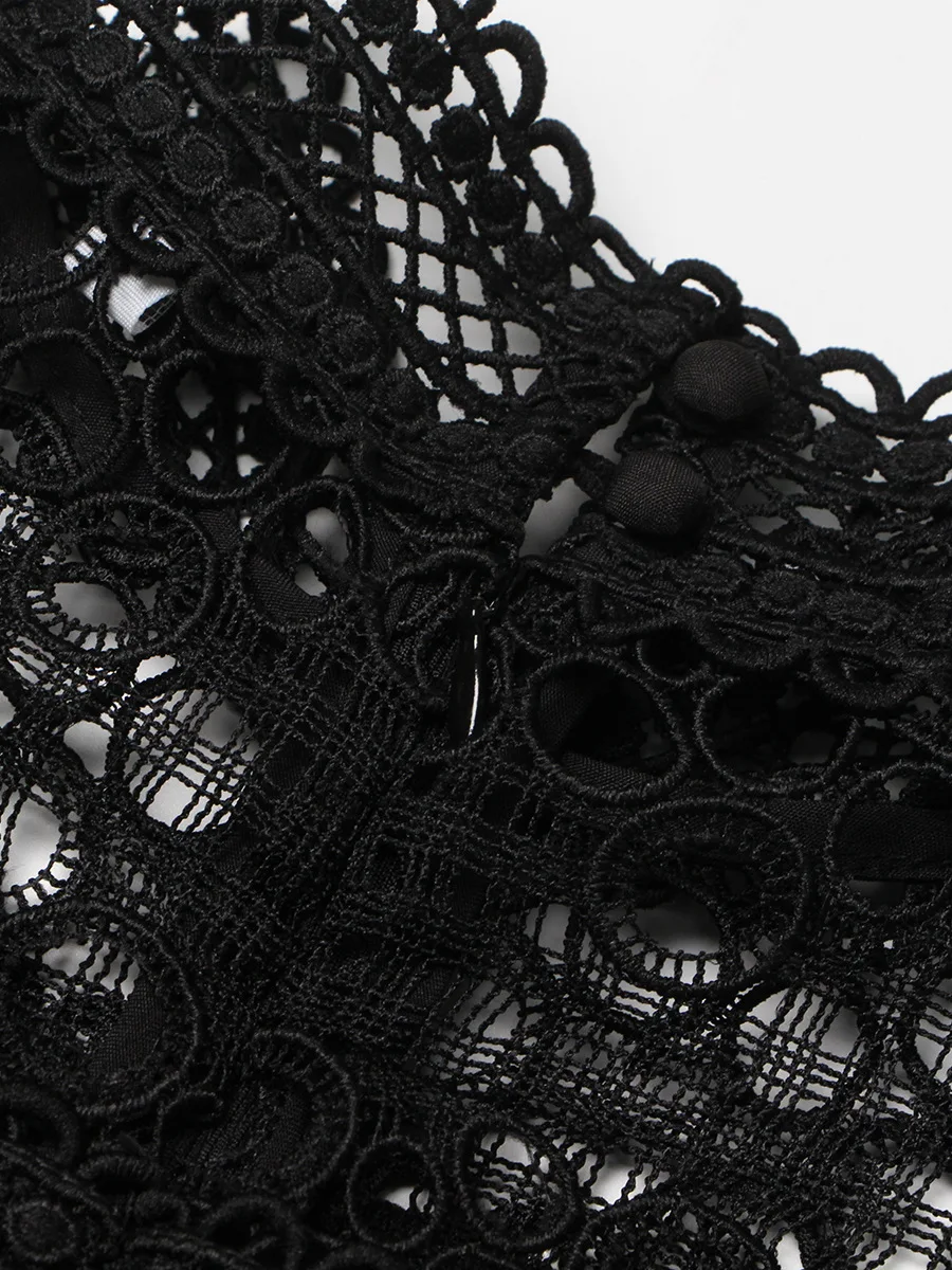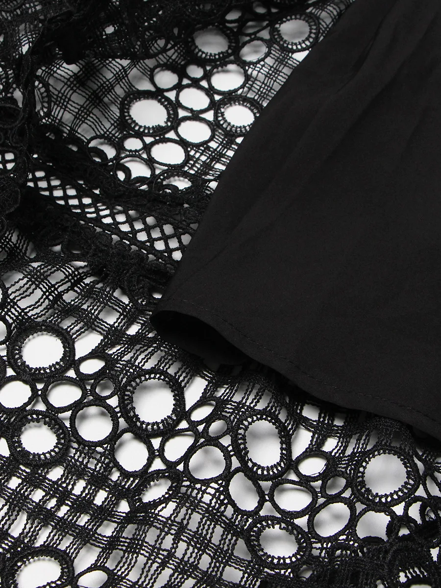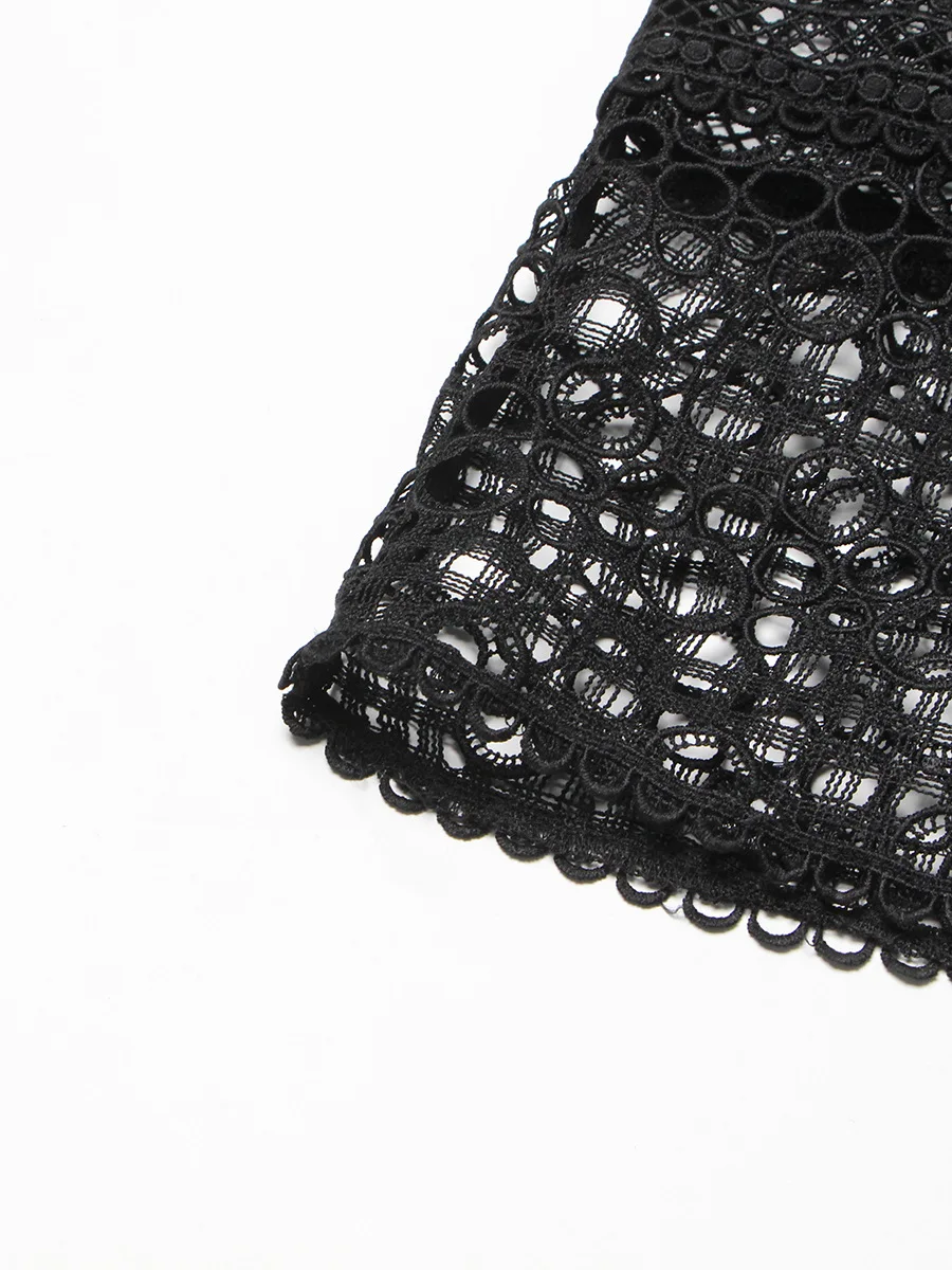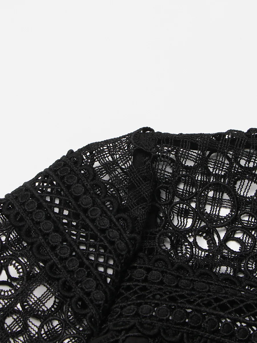 2023 new women's long dress stand collar middle sleeve sexy hollow out lace simple dress