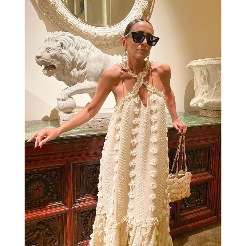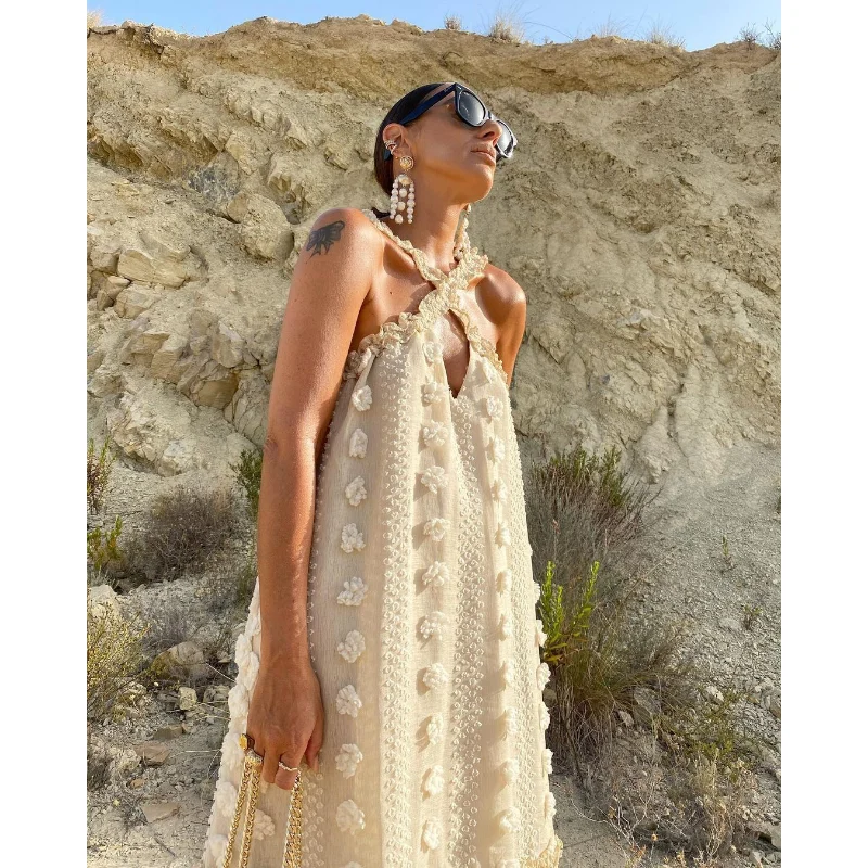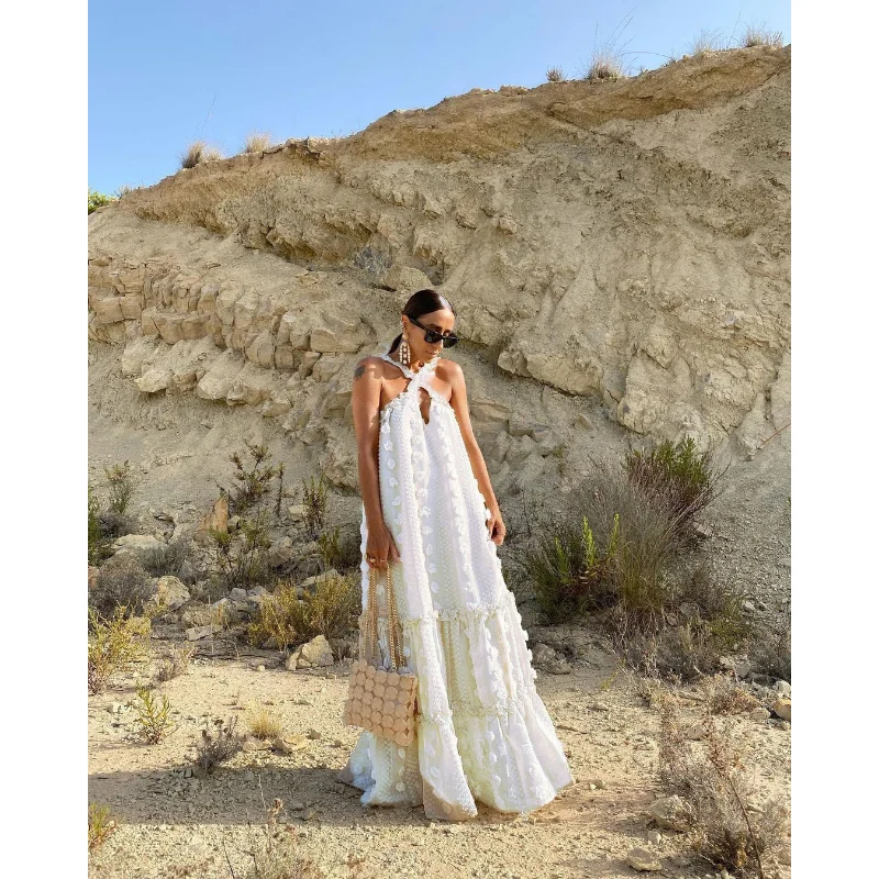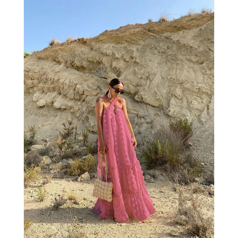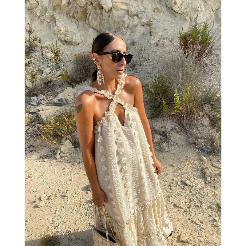 2023 Newest Women Beach Bohemian Dresses Trend Women Beach Summer Dresses Sexy Knit Women Bohemian Halter Long Dress