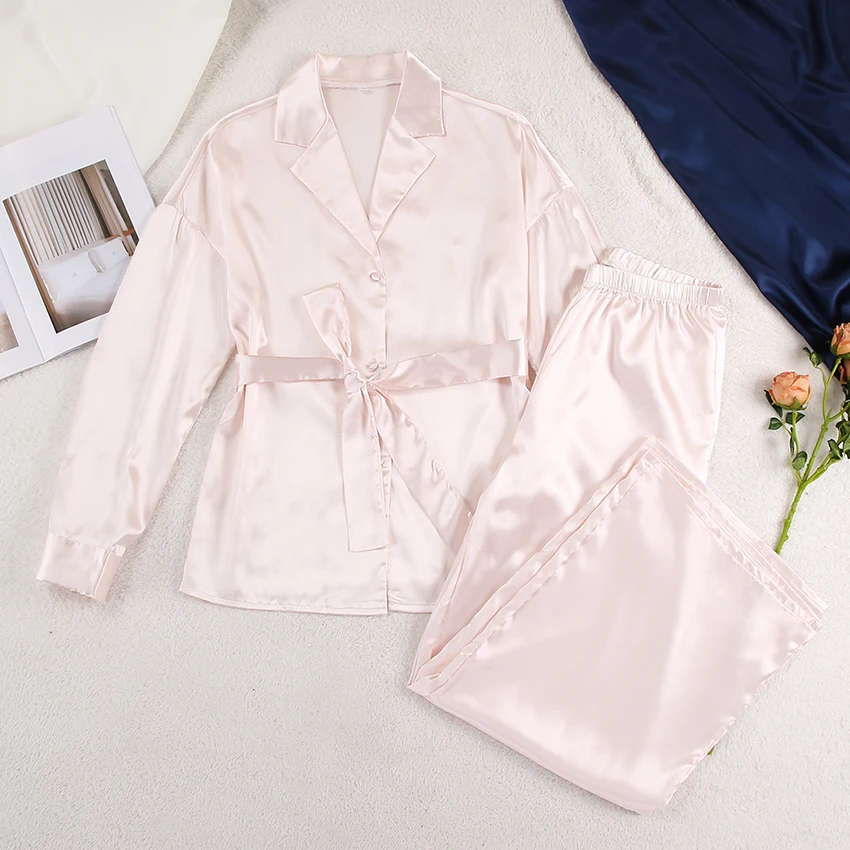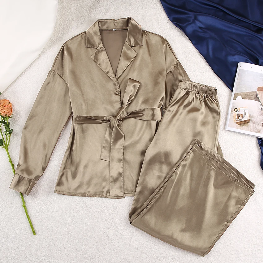 2023 Nightwear Female Set For Women Winter Fashion High Waist Loose Women's Suit Solid Sleepwear Satin Full Sleeves Home Suit