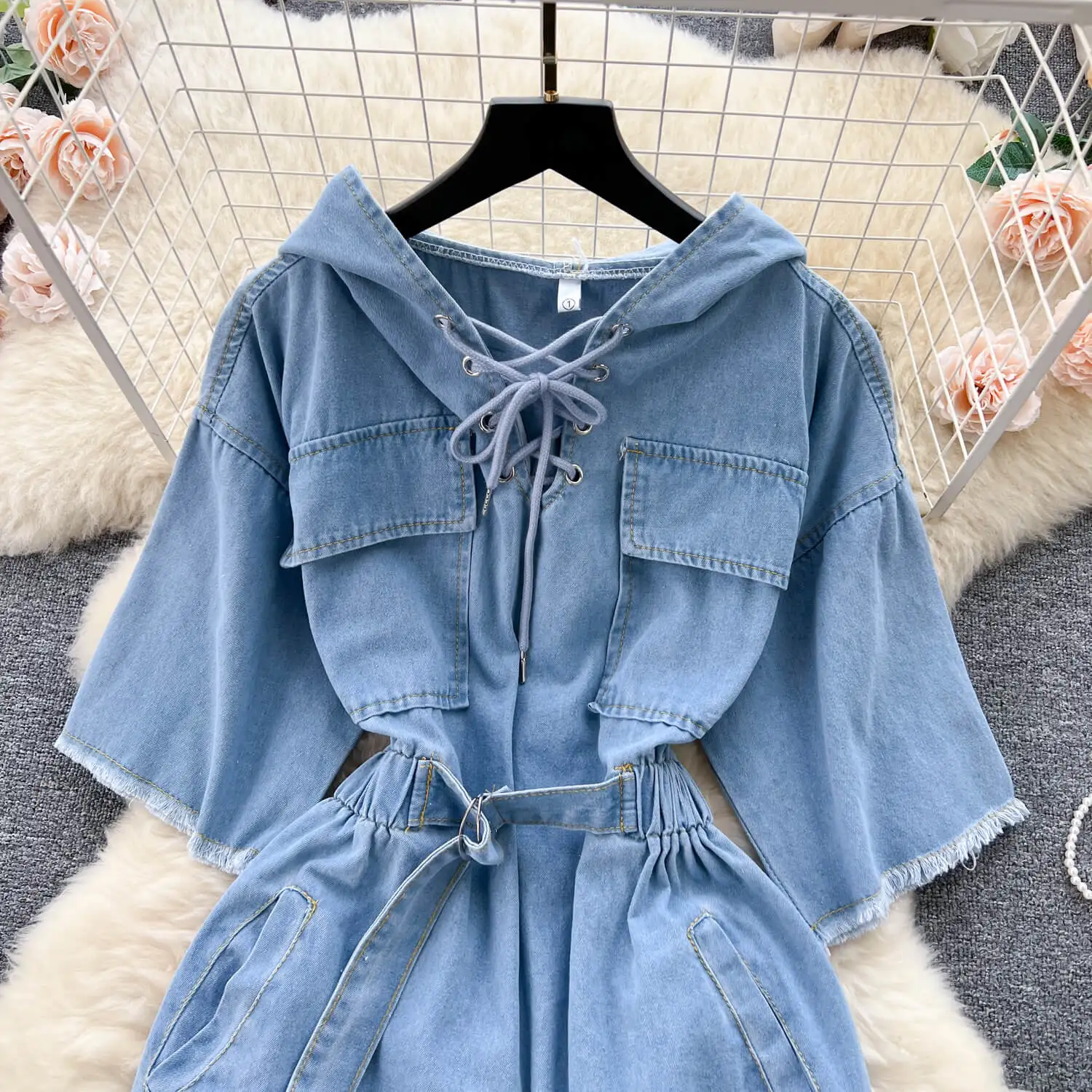 2023 Retro Casual Lace-Up Hooded Cowboy Waist Slimming Dress woman