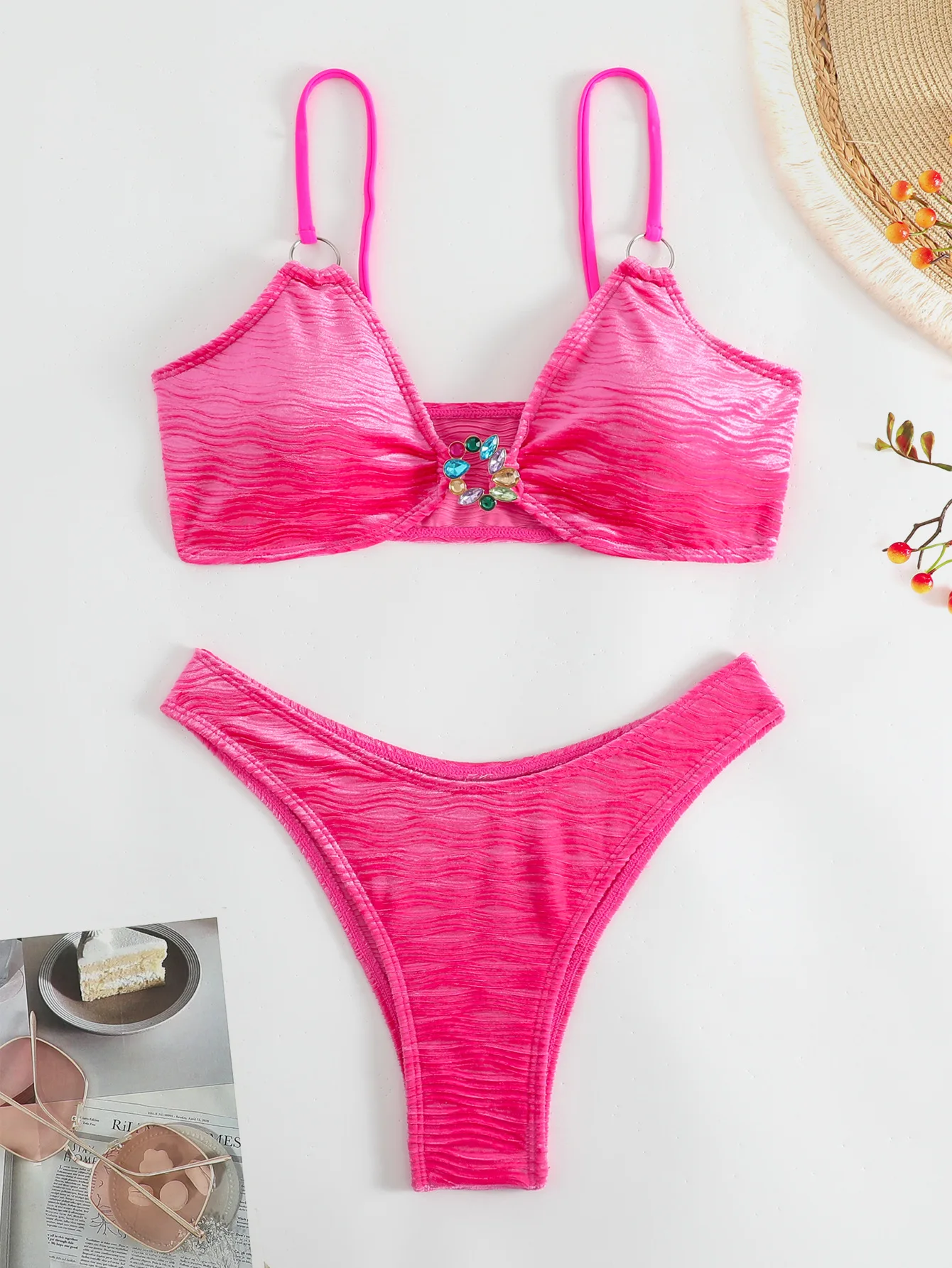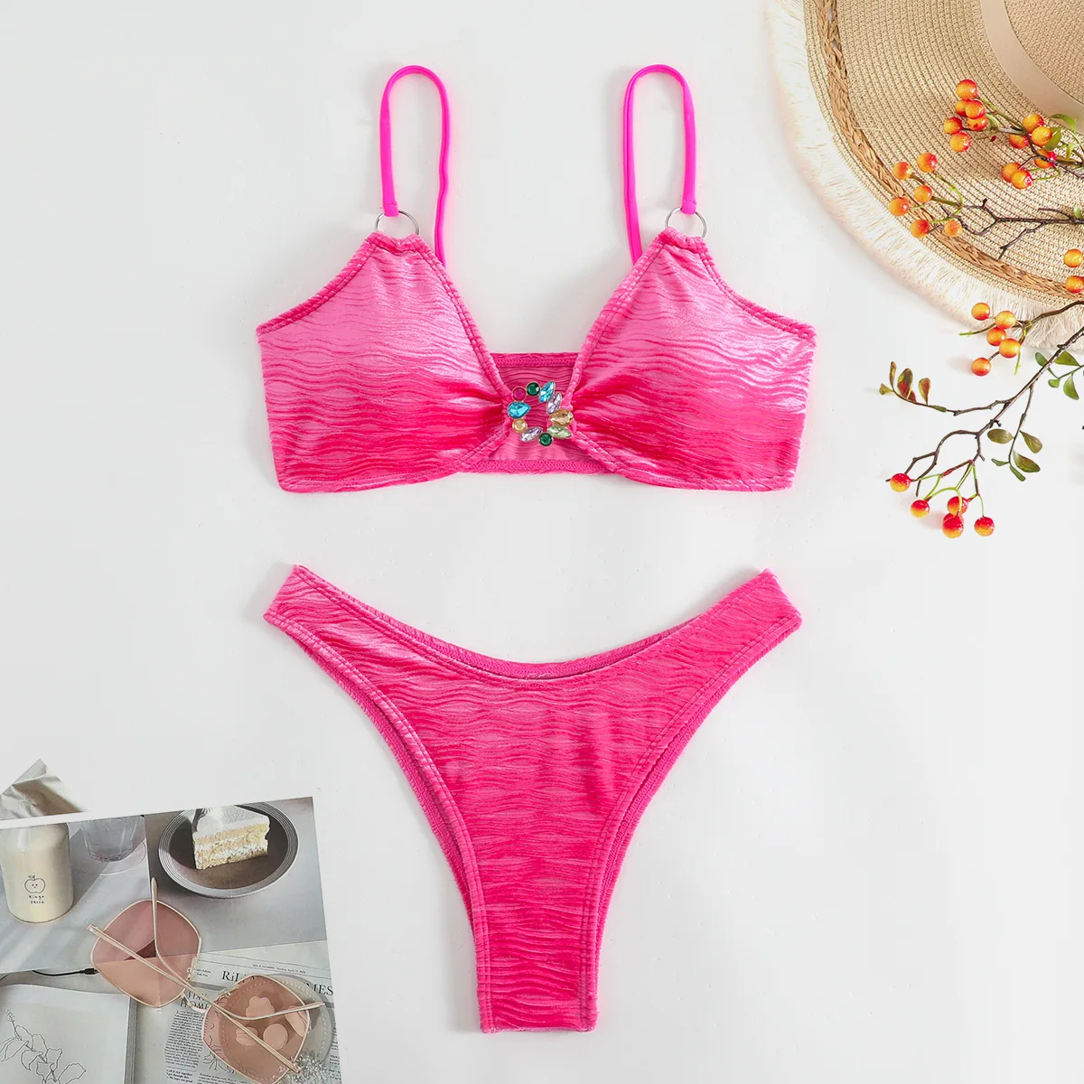 2023 Sexy Wrinkled Halter Brazilian Bikini Female Swimwear Women Swimsuit Two-pieces Bikini set Bather Bathing Suit Swim Lady