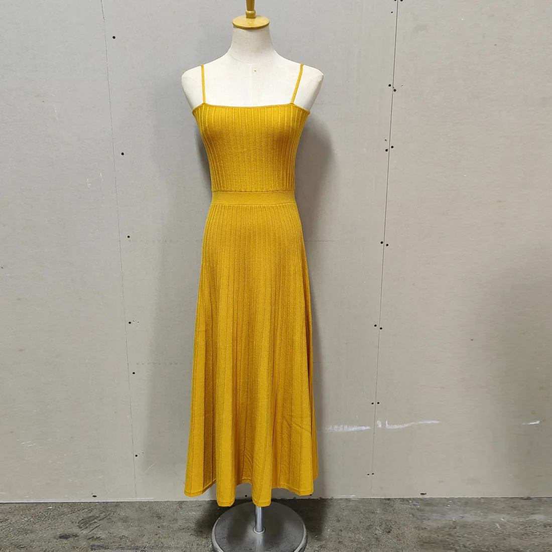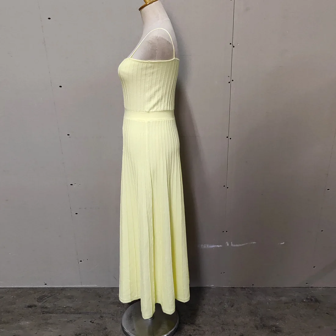2023 Sleeveless Pleat Knit Dress Halter Neck A-line Pit Strip Slim Long Dress Sundress Solid Color Casual Women Summer Dresses