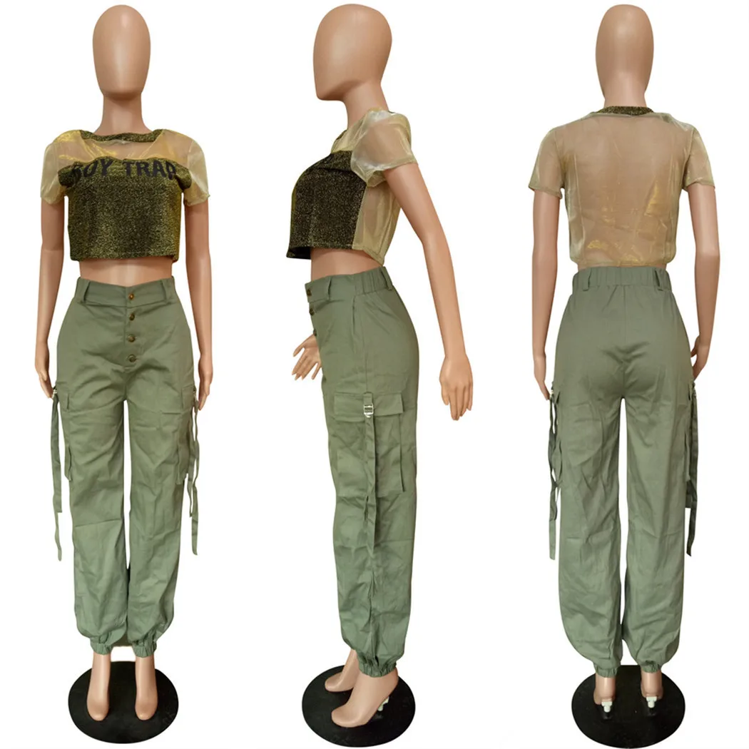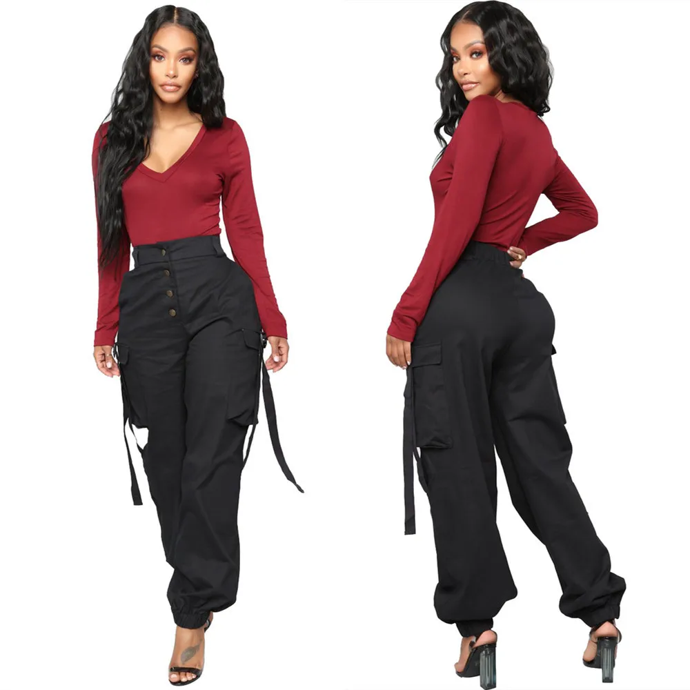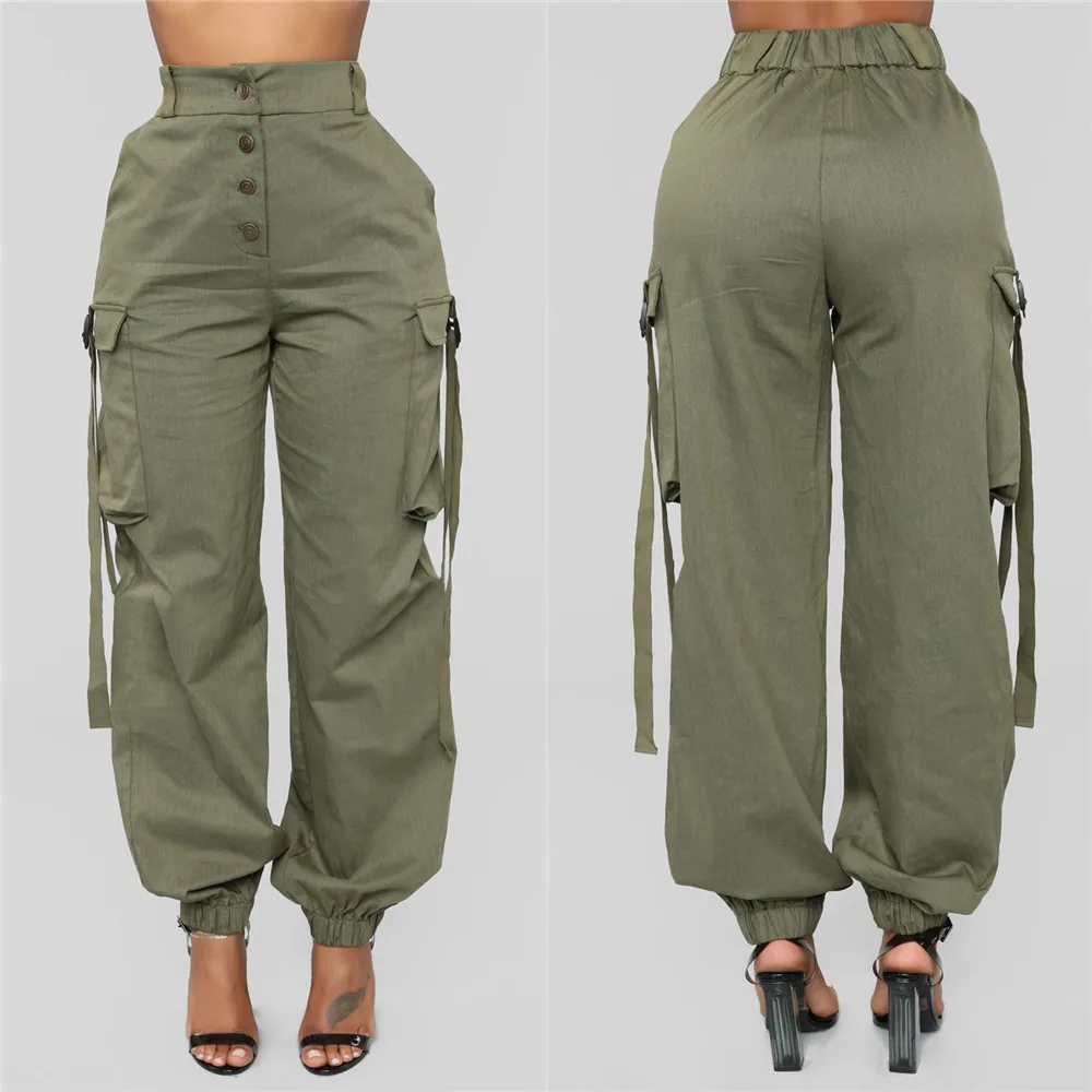 2023 Solid High Waist Womens Cargo Pants Streetwear Women Ladies Pant
