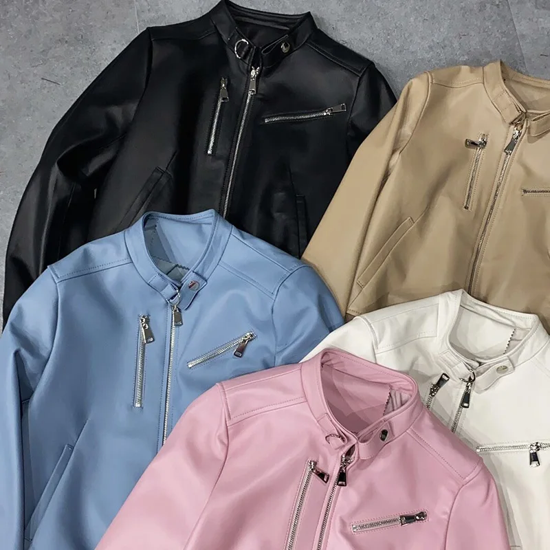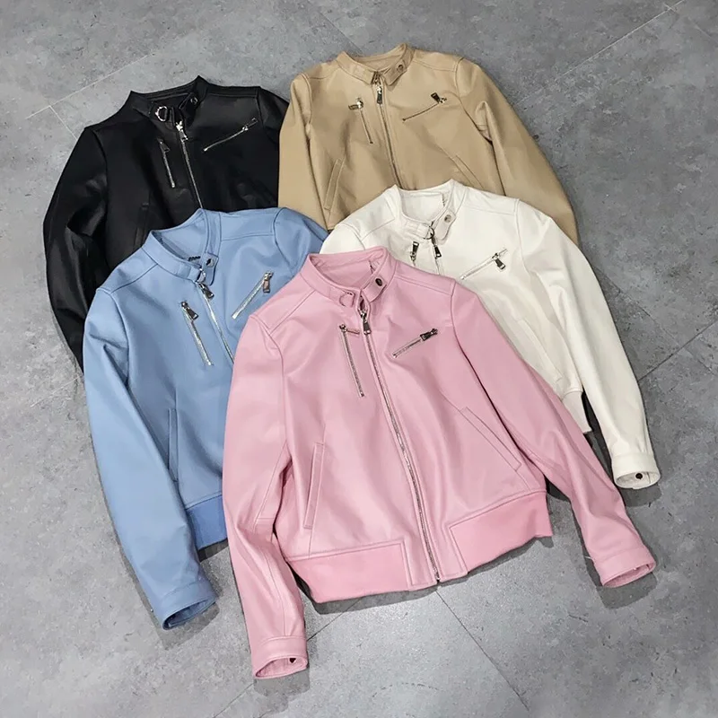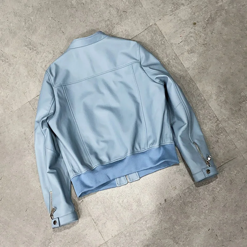 2023 Sports Style Genuine Leather Baseball Jacket Women Sheep Leather Jacket