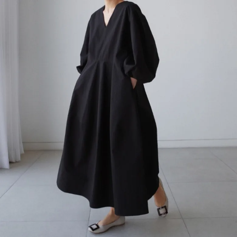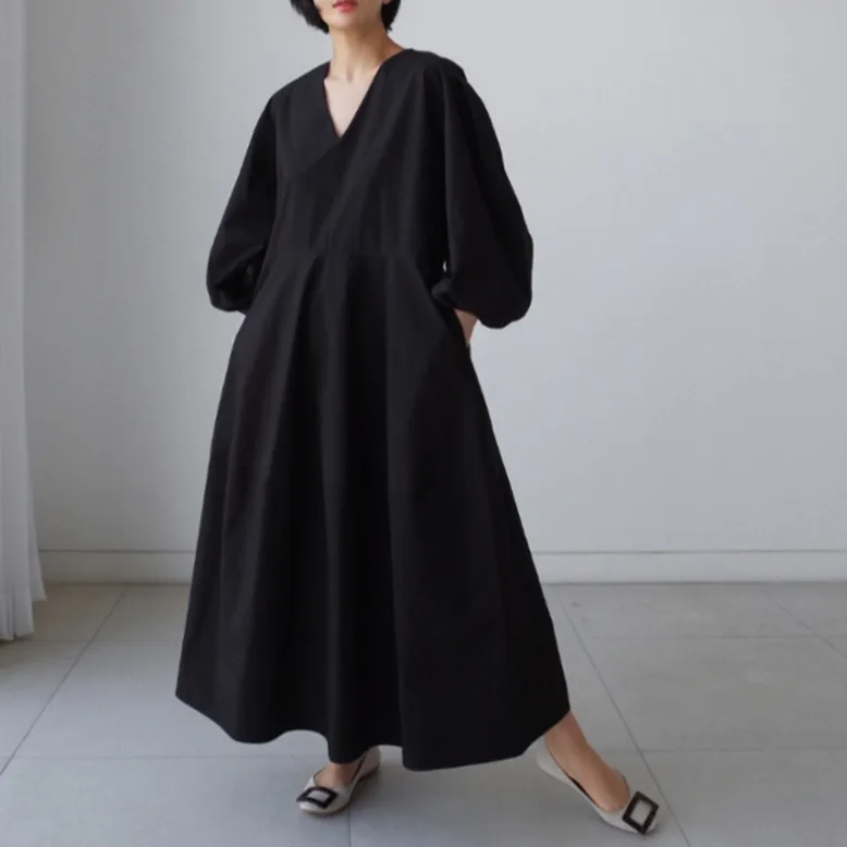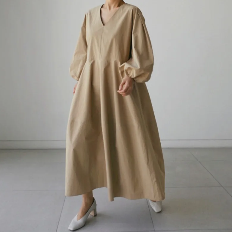 2023 Spring and Autumn Loose large size Shirt dress over the knee Long dress Casual bottoming shirt Lantern sleeve
