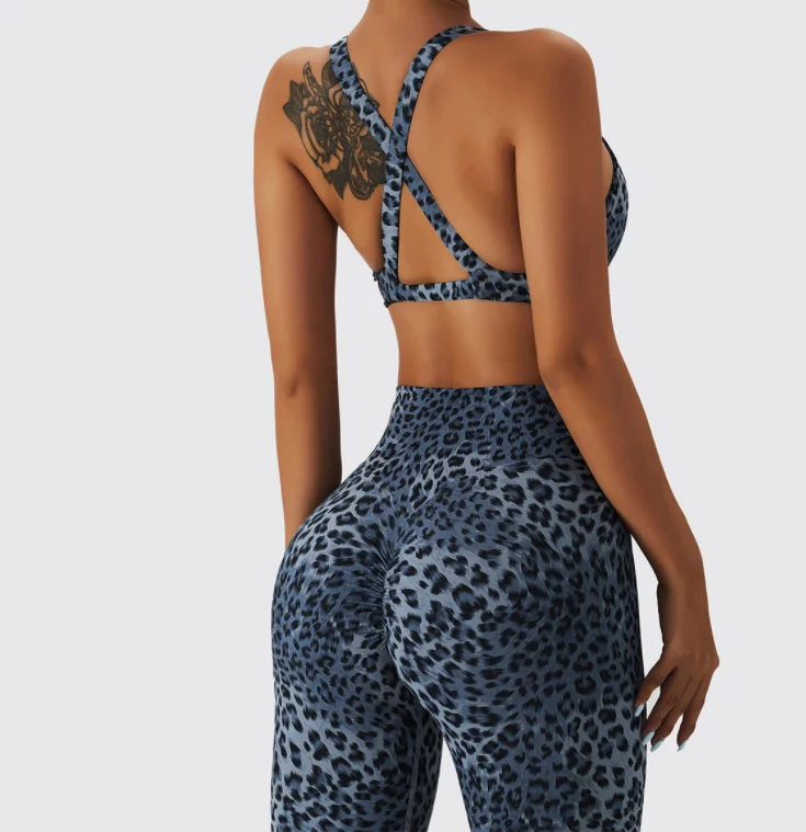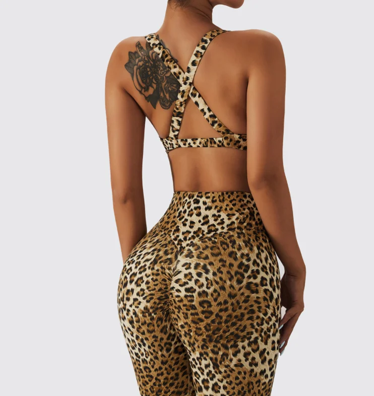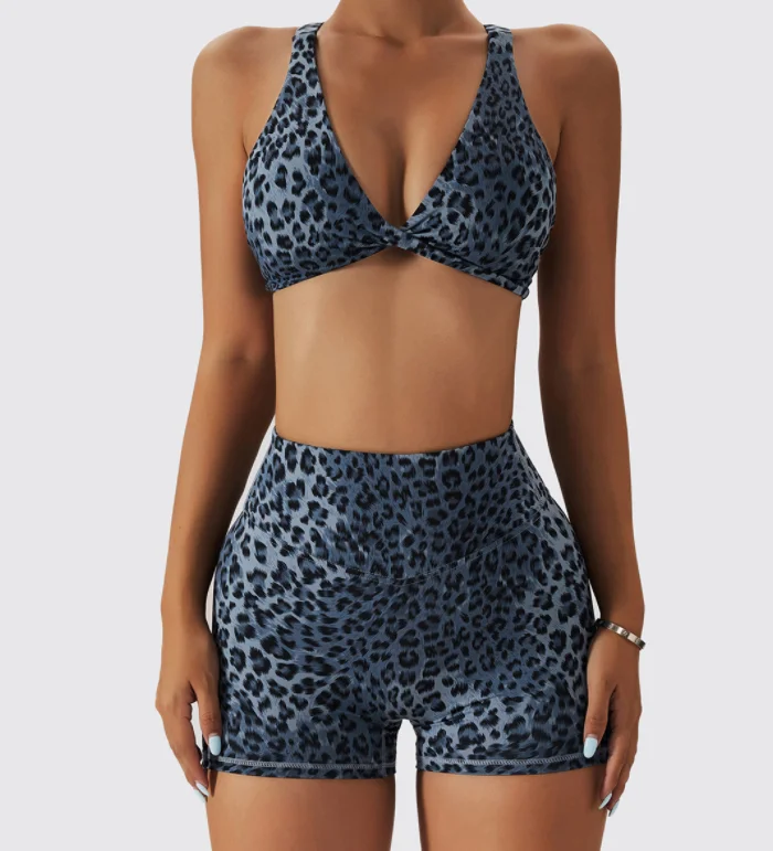 2023 Spring Summer New 3-color Leopard Print Sexy Bra Shorts Sets Seamless Sports Suit Peach Hip Lifting High Waist Fitness