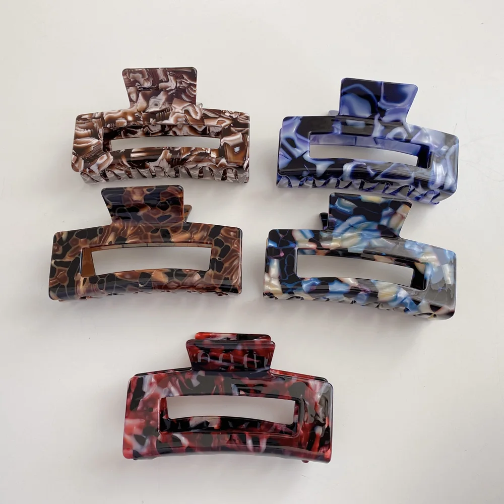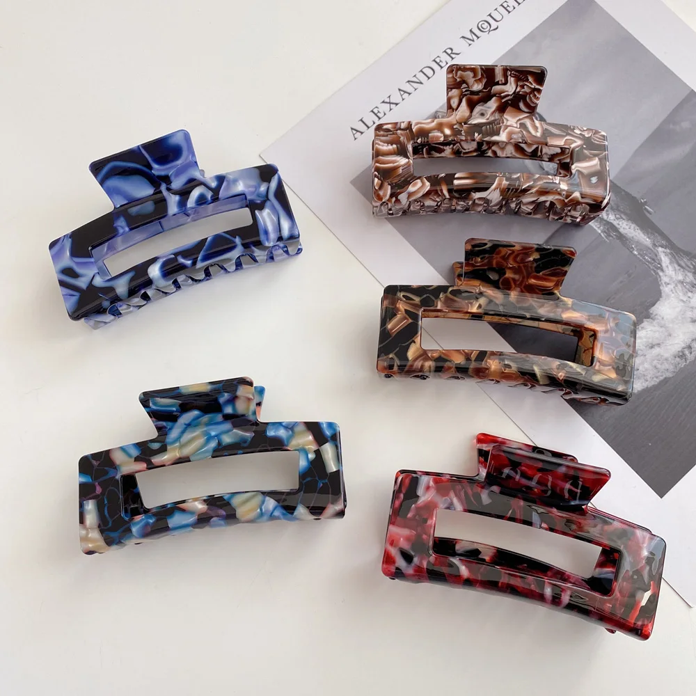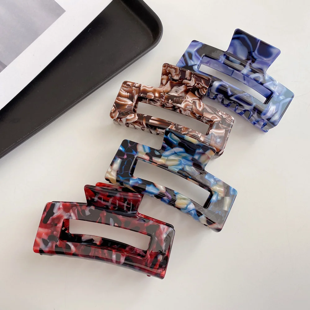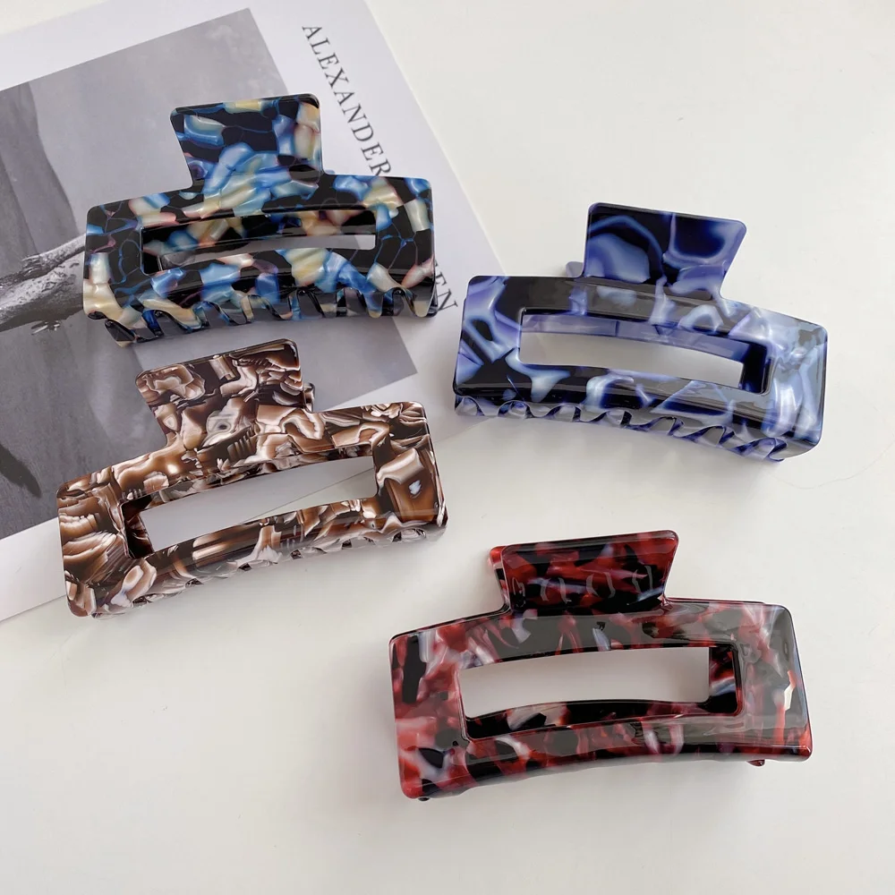 2023 Square Acetate Hair Claw Clip Large Vintage Rectangular Marble Women Hair Clips Claws Accessories for Thick Hair