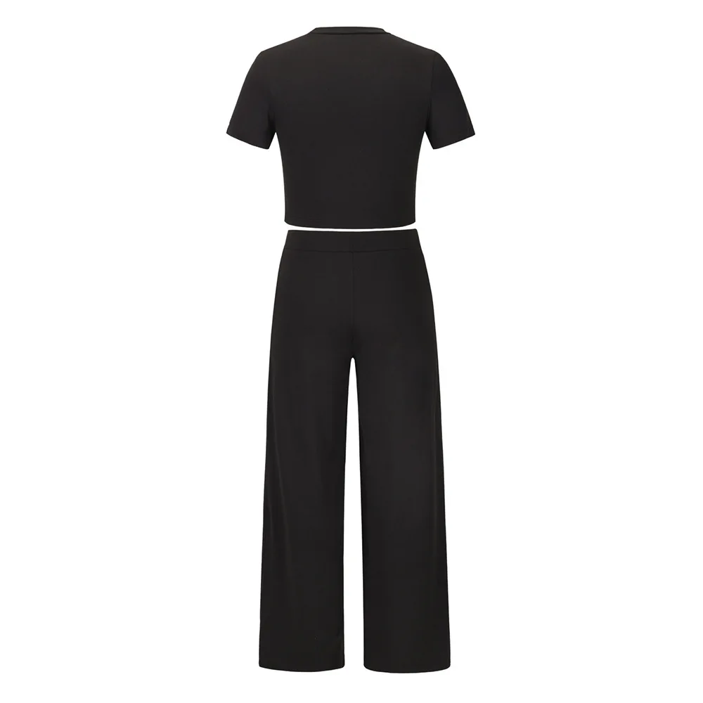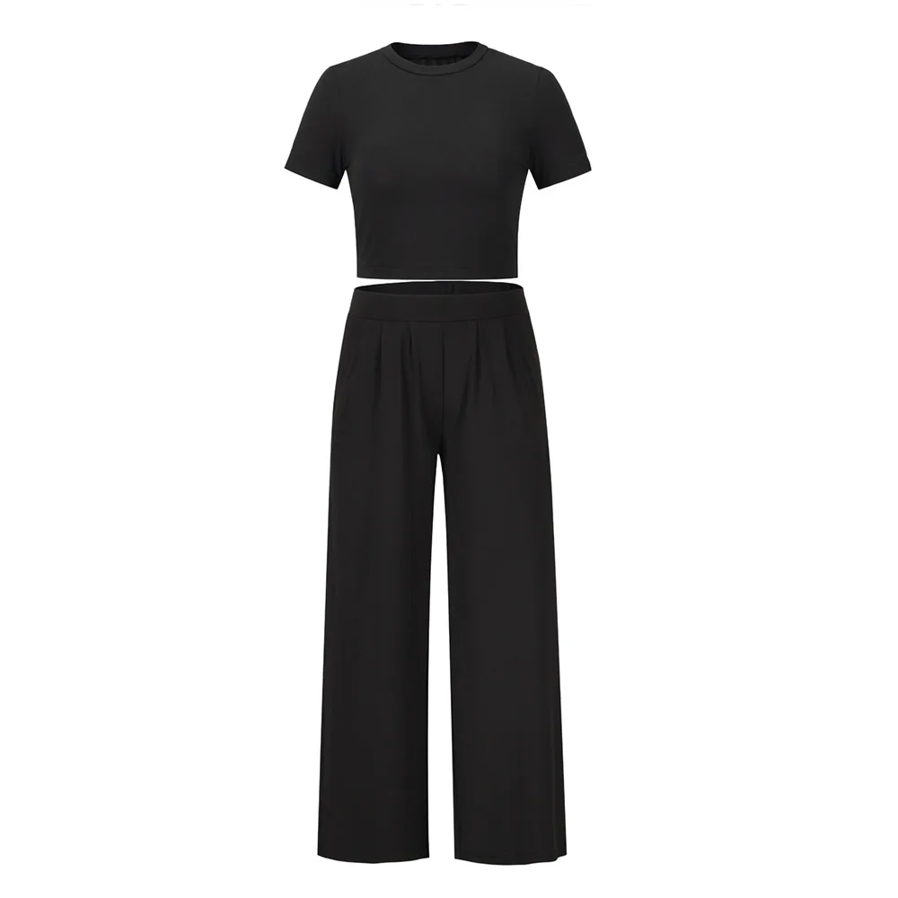 2023 Summer fashion clothing cropped plain t shirt and wide leg pants 2 two piece matching set lounge wear sets women