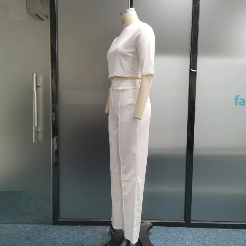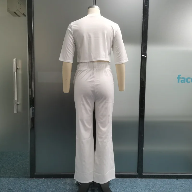 2023 Summer Fashion Round Neck Short Sleeve Women Two Piece set Solid Top Loose with Pockets Pants Sets High Streetwear
