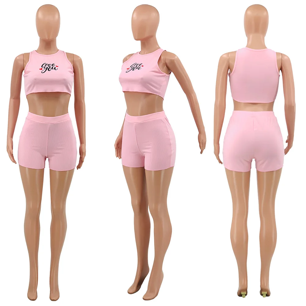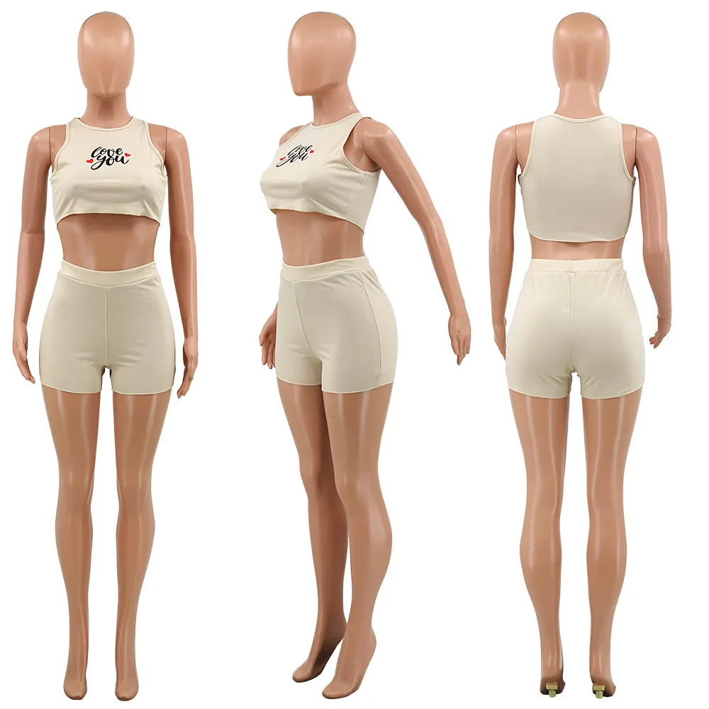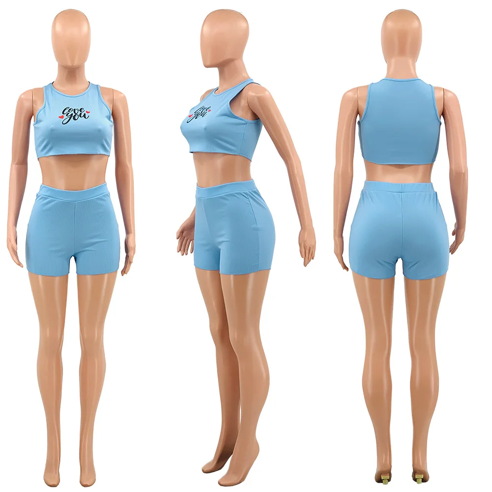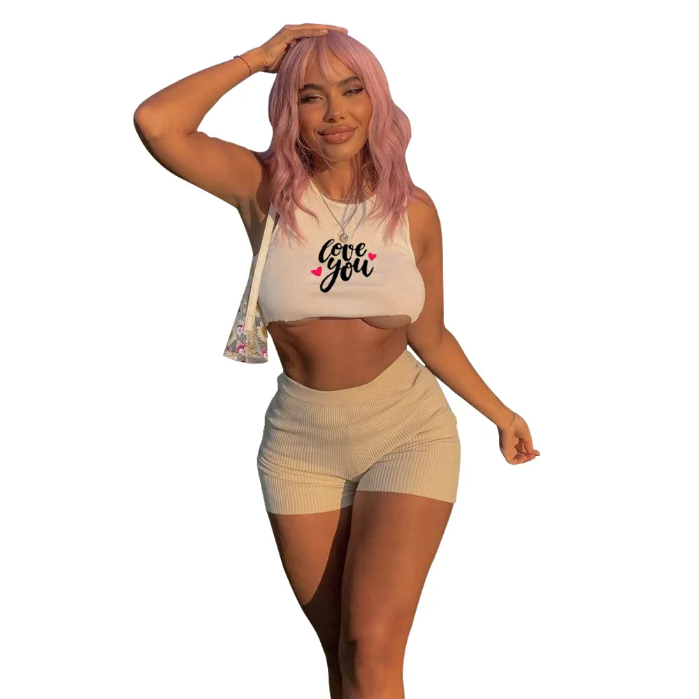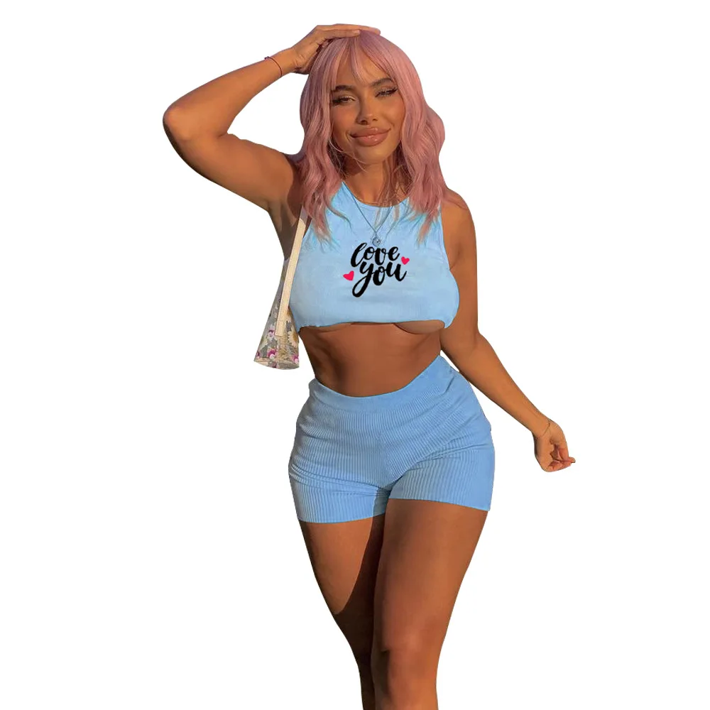 2023 Summer Hot Selling Casual Two Pieces Set for Women Matching Sets 2 Piece Ribbed Ladies Crop Top Sexy Short Set