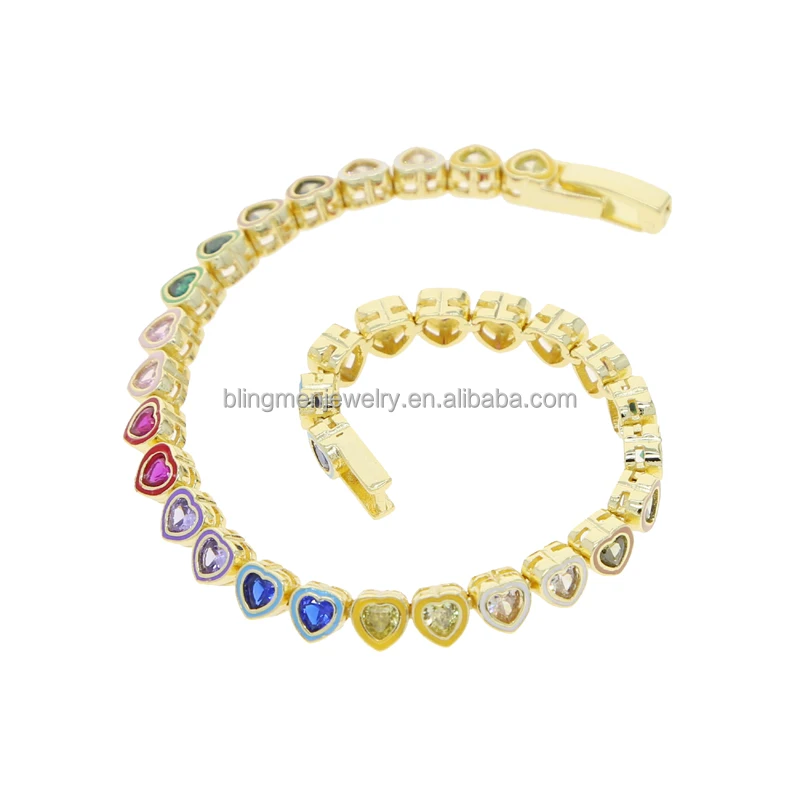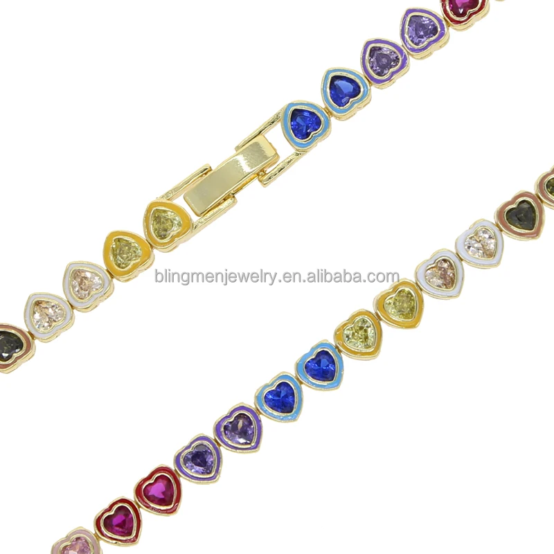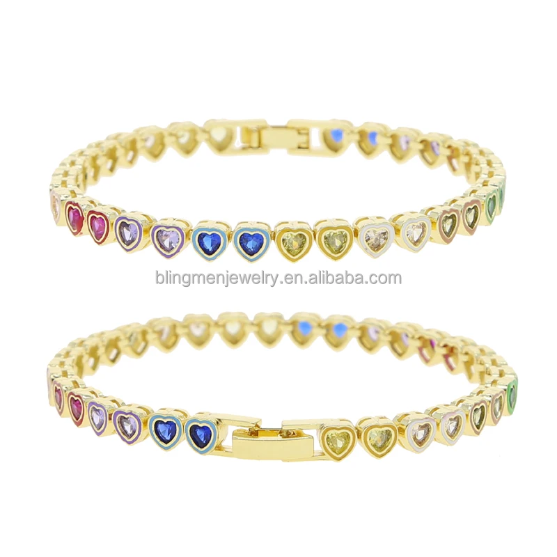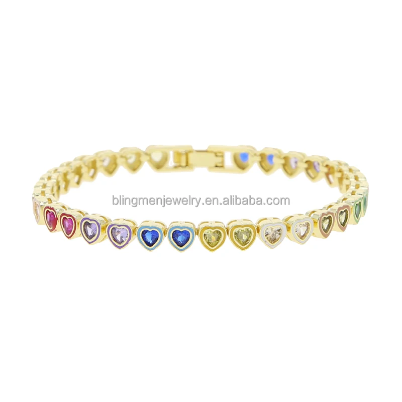 2023 Summer Hot Selling Colorful Jewelry Unique New Design Rainbow Enamel Bezel Heart CZ Tennis Bracelet For Women