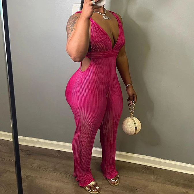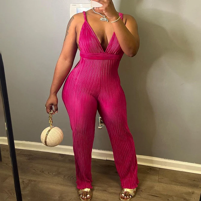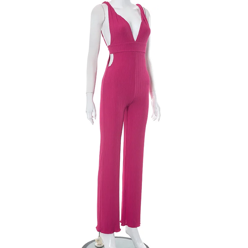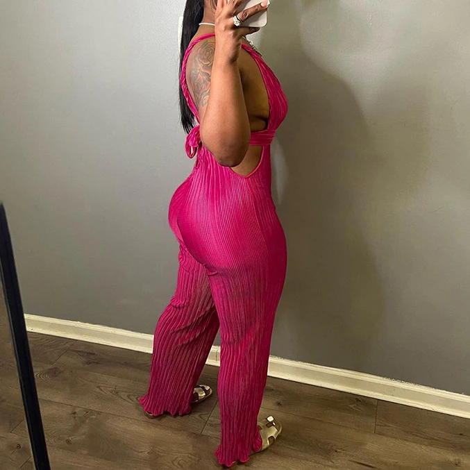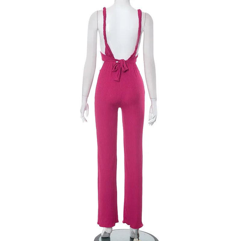 2023 Summer New Arrival Fashion Solid Sleeveless Romper Woman Sexy Backless Lace Up Bodycon Jumpsuit
