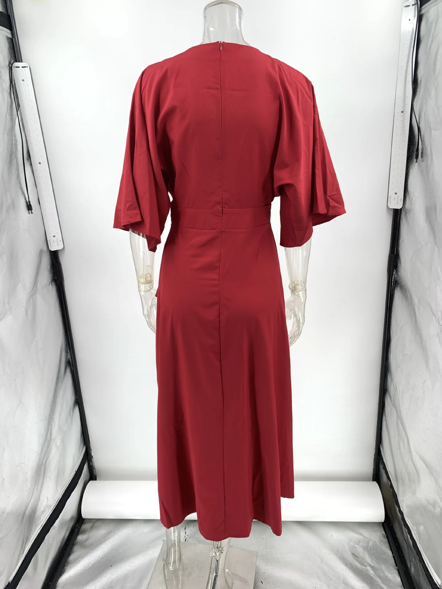 2023 Summer New European and American Casual V-neck Solid color Irregular dress Dress for women