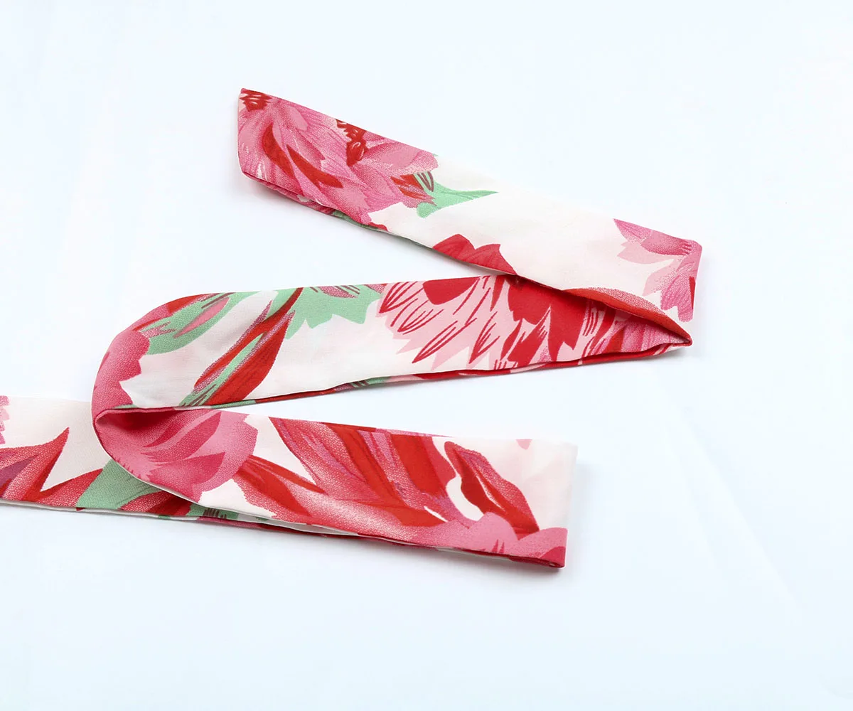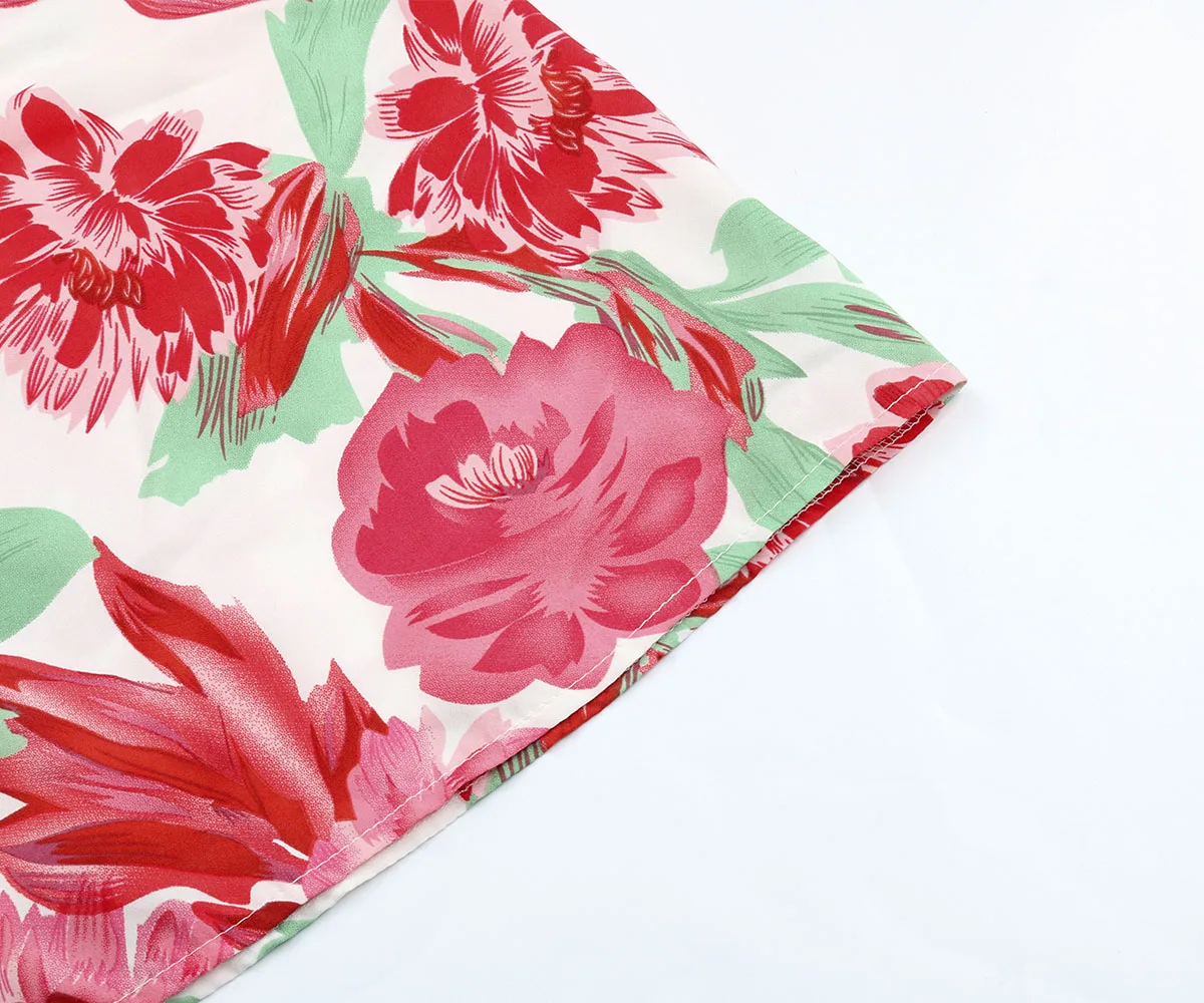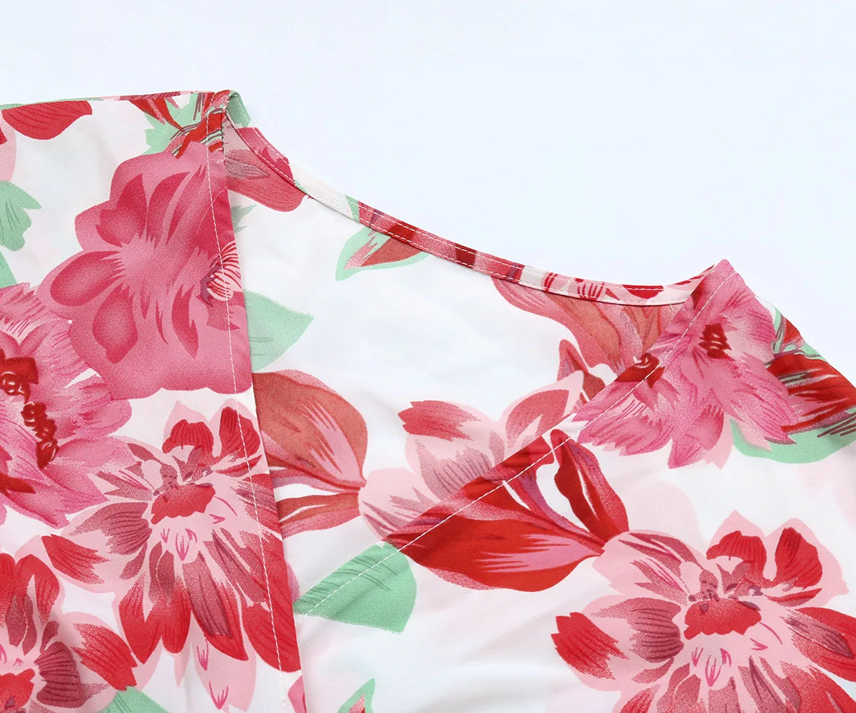 2023 summer new European and American women's dress French floral skirt V-neck tie slim dress woman