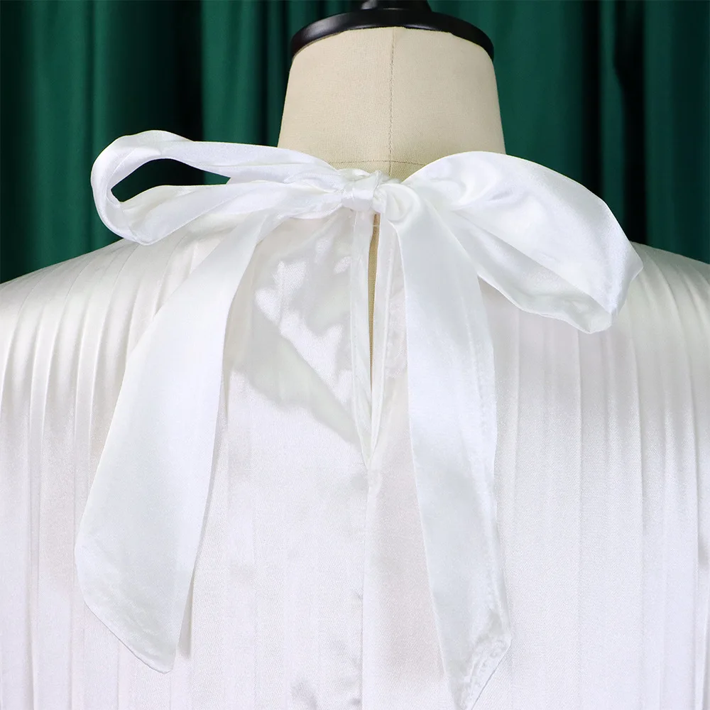 2023 Summer New Fashion Loose Casual Strappy Pleated Dress Women's Crew Neck Short Sleeves Casual Dress