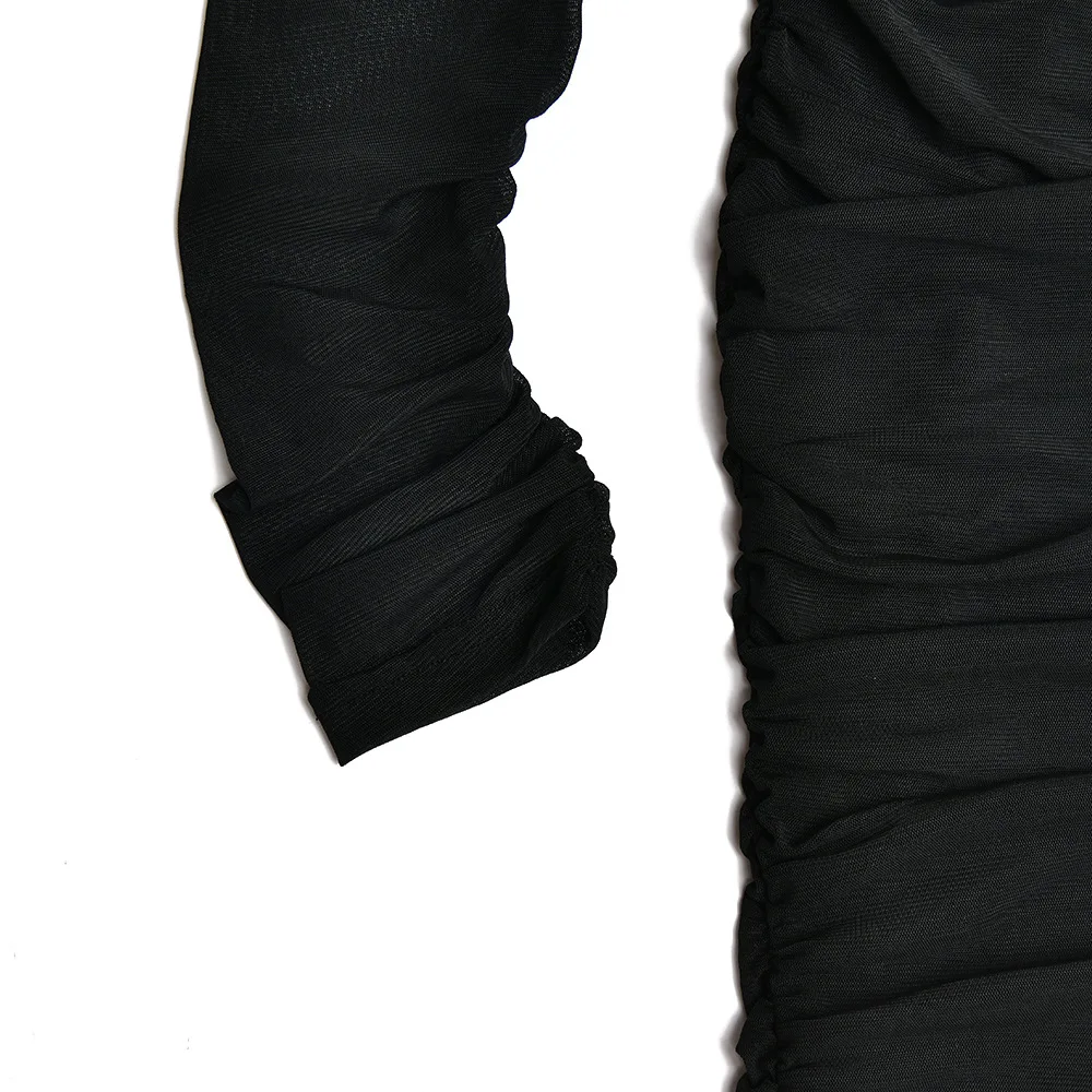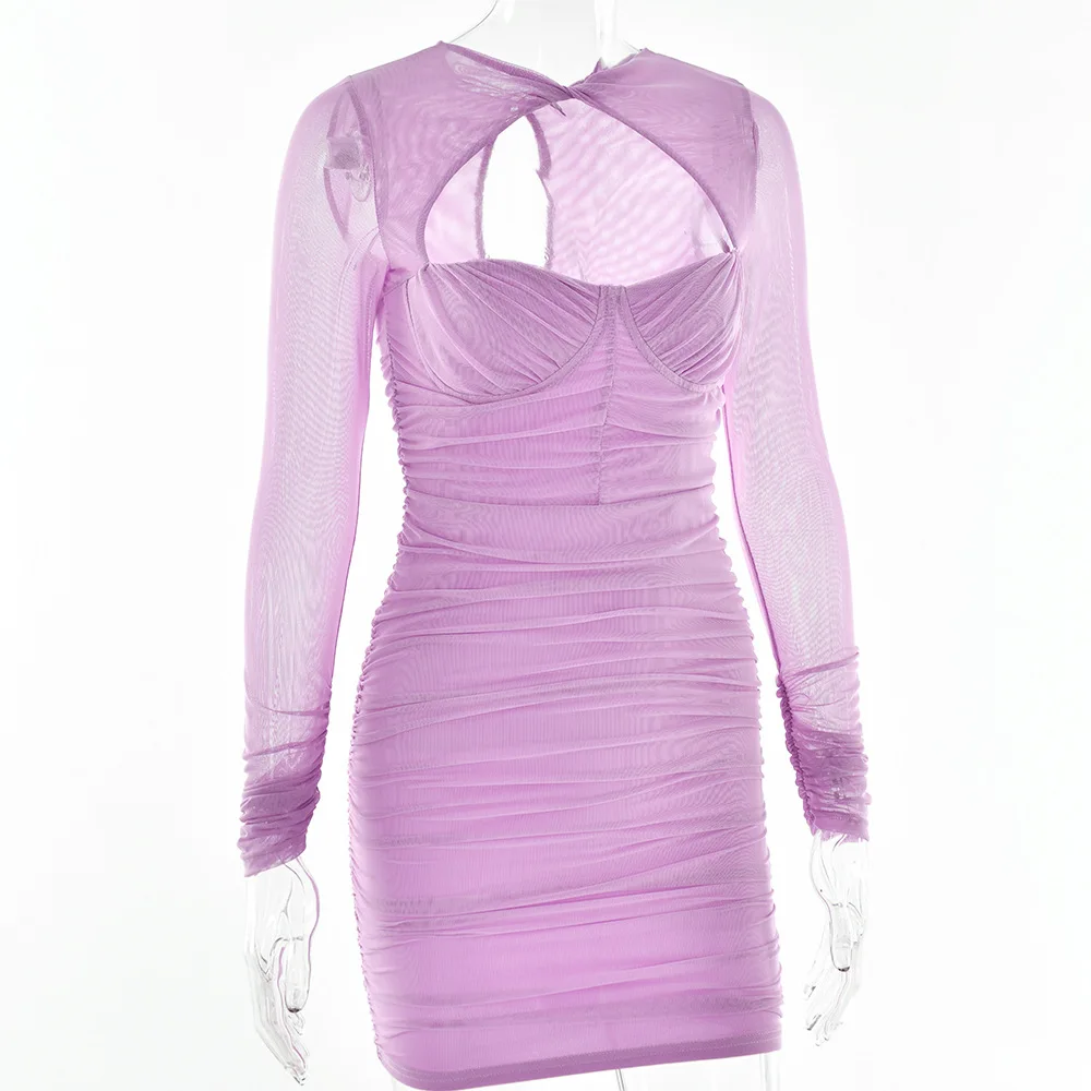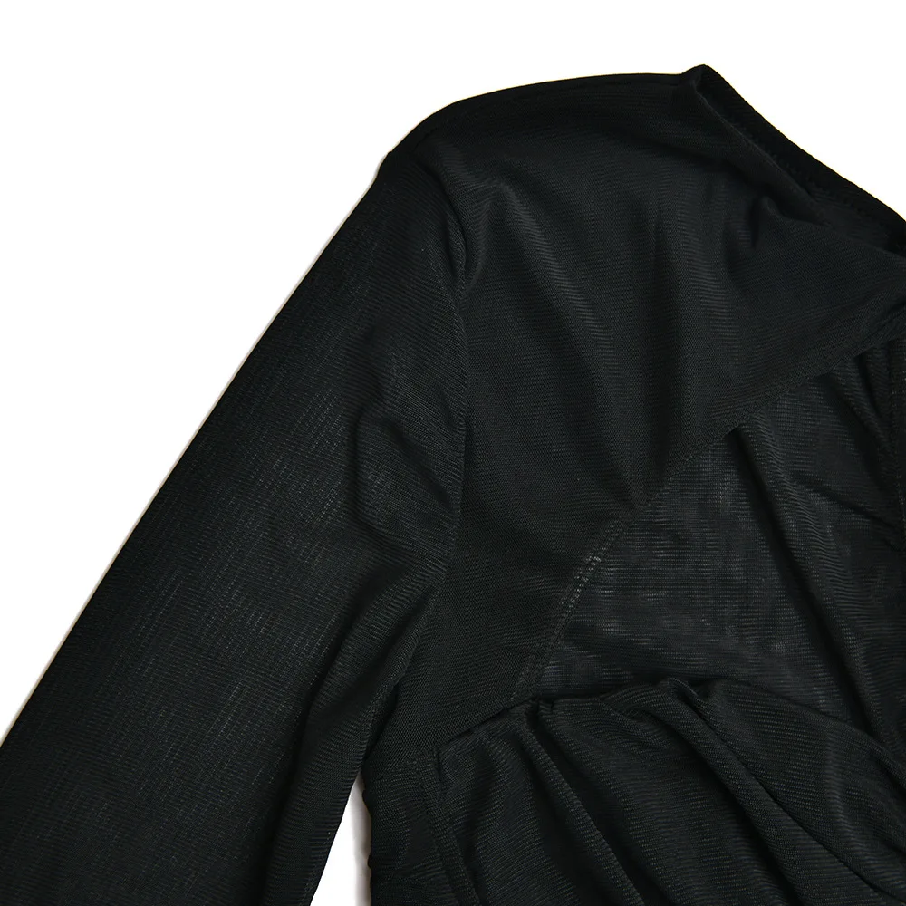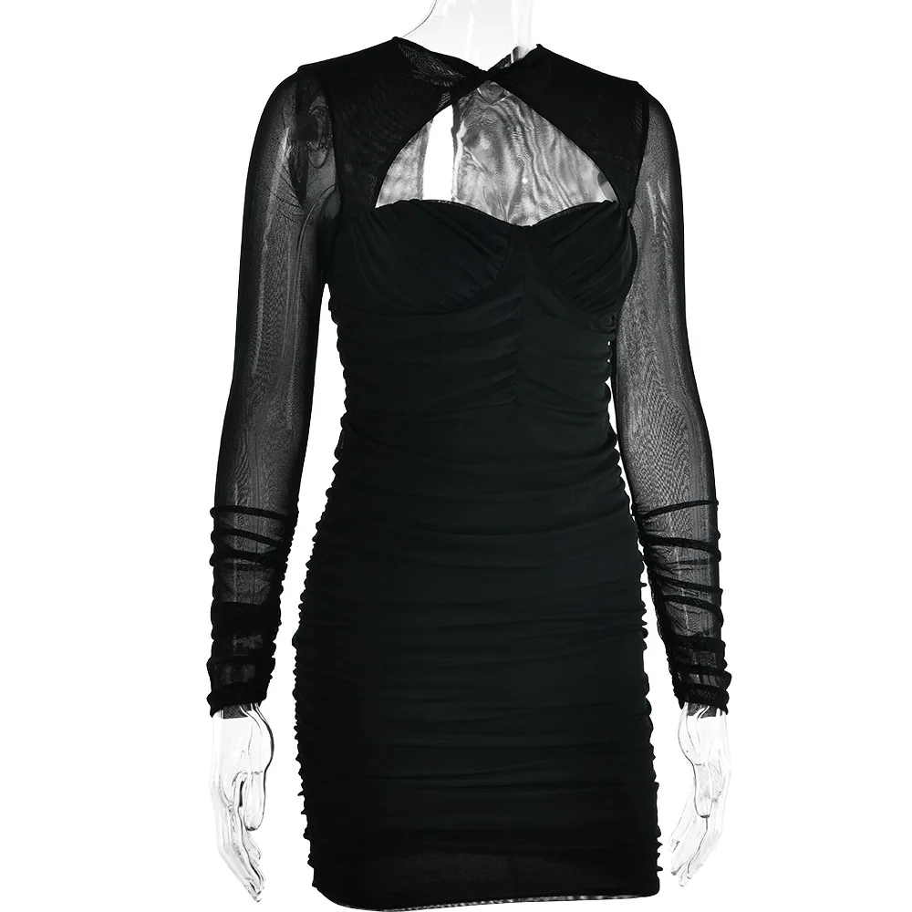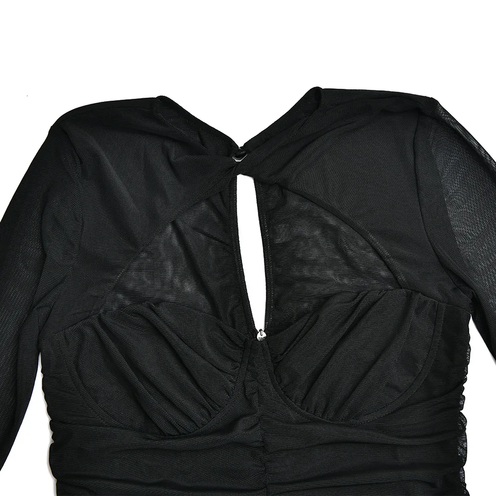 2023 Summer New Hollow Out Low Cut Dress for Sexy Spicy Girls Perspective Long Sleeve Tight Wrapped Hip Skirt