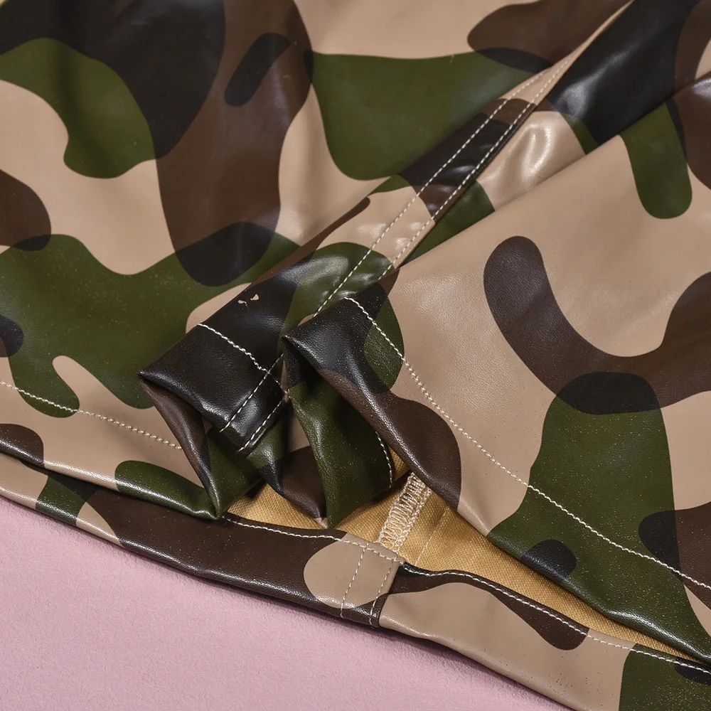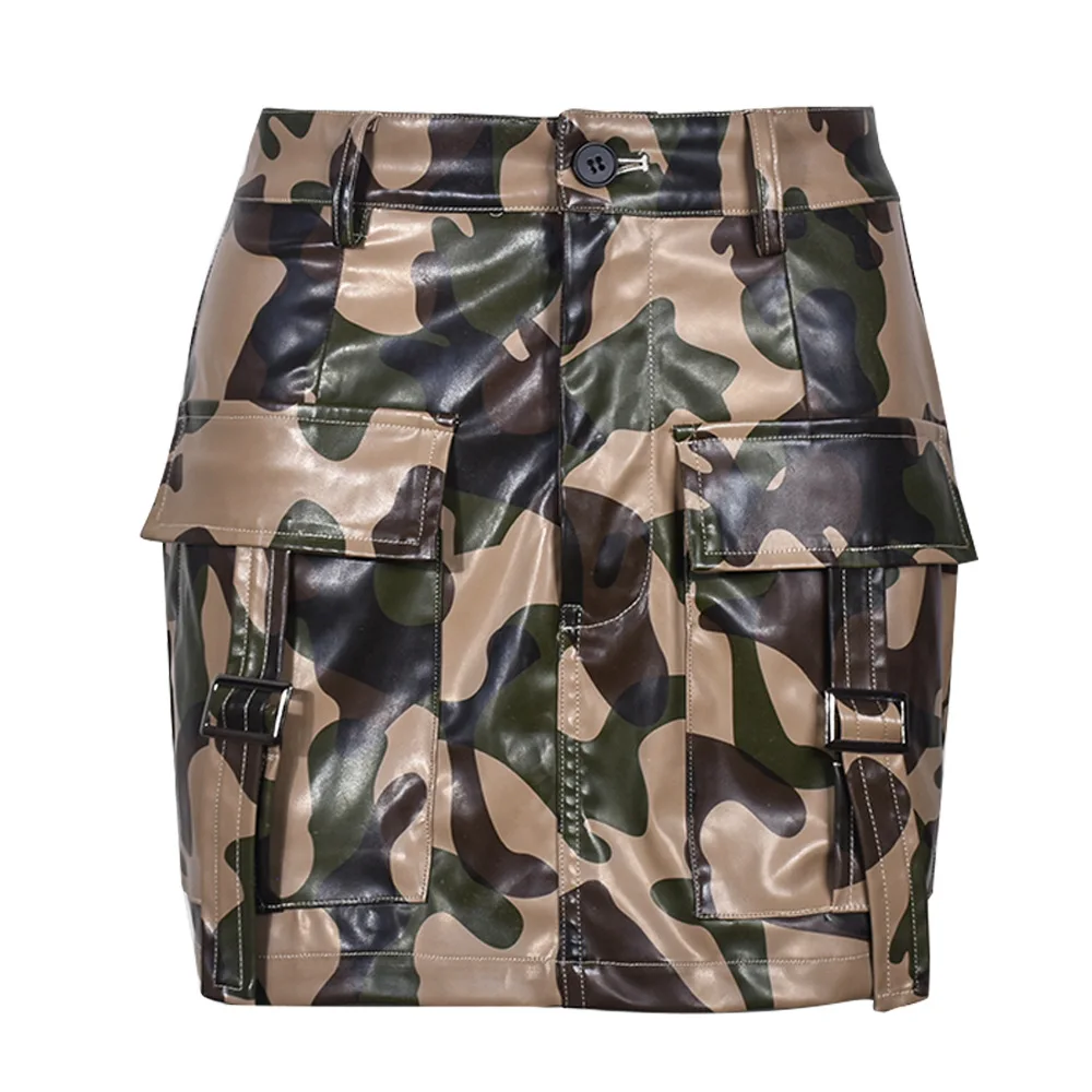2023 Summer New Outdoor Street Trendy Elastic Short Fashion Female Camouflage PU Sexy Mini Skirt