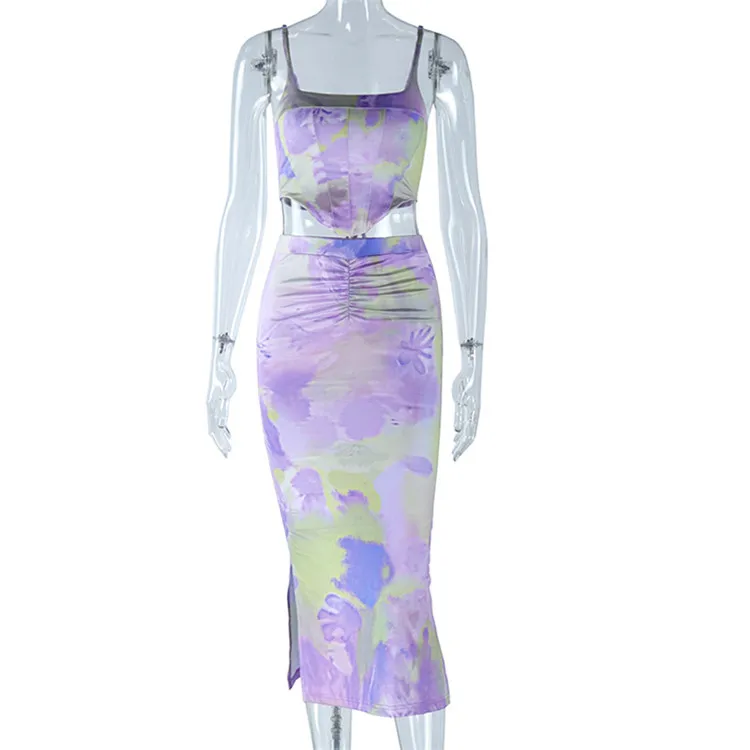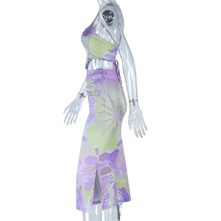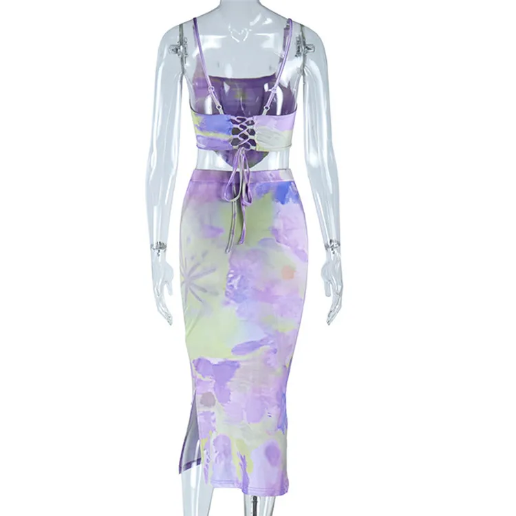2023 Summer Sexy Fashion Party Two Piece Dress Sets Elegant Women Lace Up Top And Skirts Outfits Matching Sets