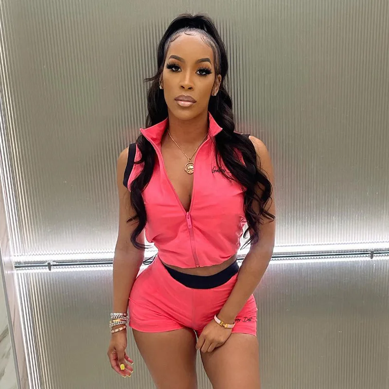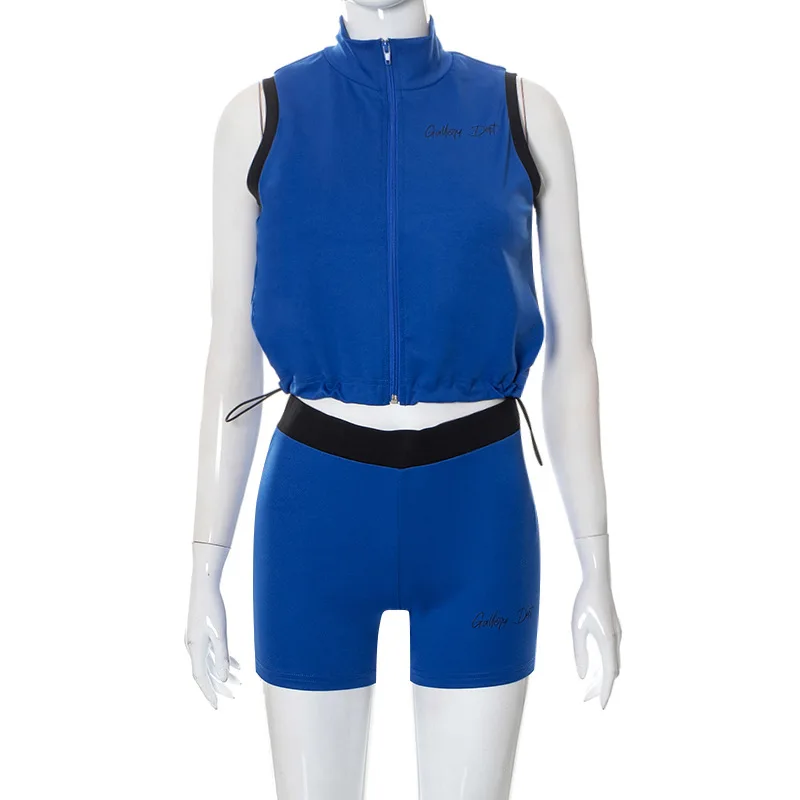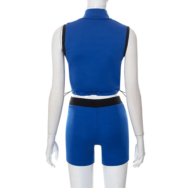 2023 Summer Sleeveless Zip Up Women Workout Tracksuit Jogger Biker Shorts Two Piece Outfit Clothes Active Wear Sport Set