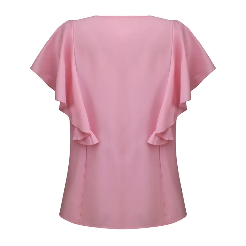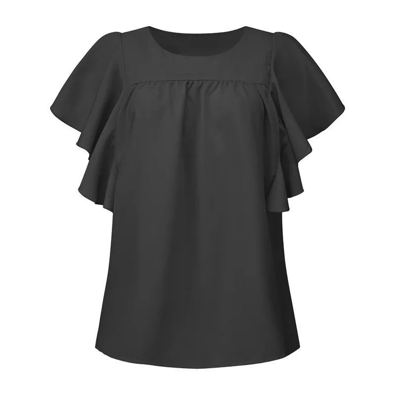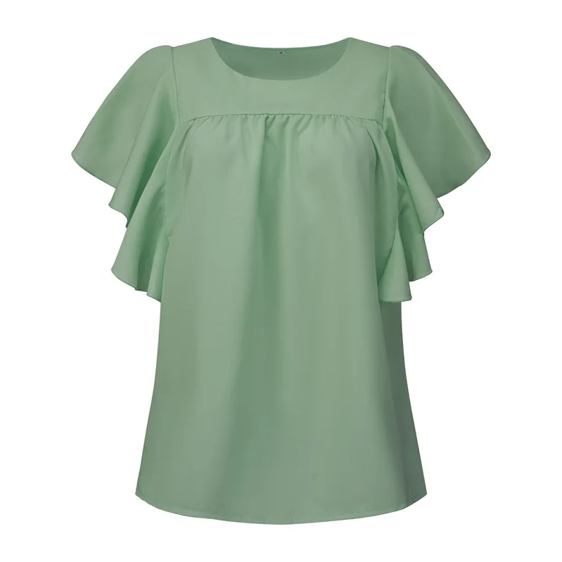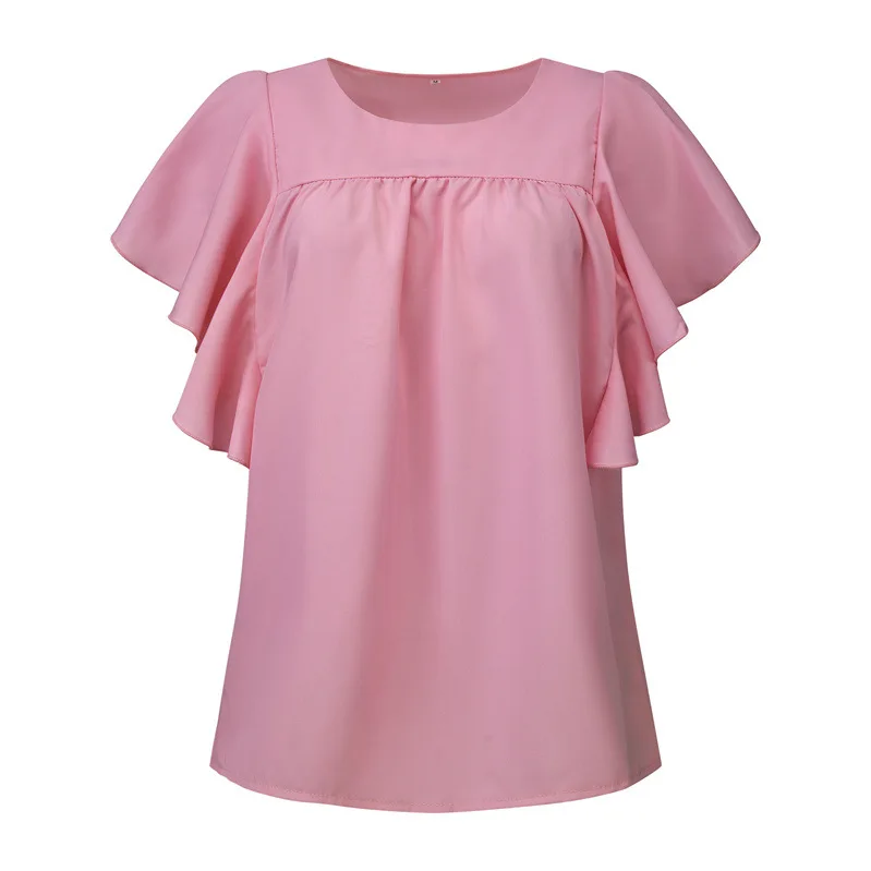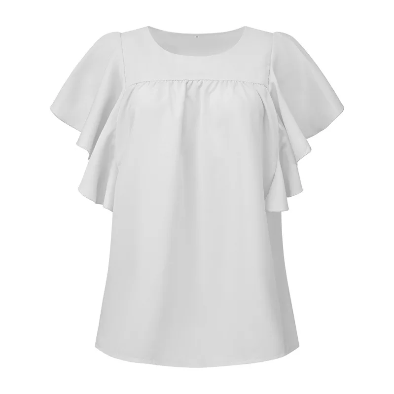 2023 Summer Solid Color Simple Round Neck Flying Sleeve Loose Woman Shirt Sweet Girl Office Top