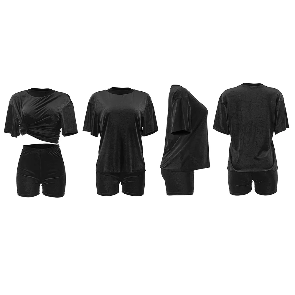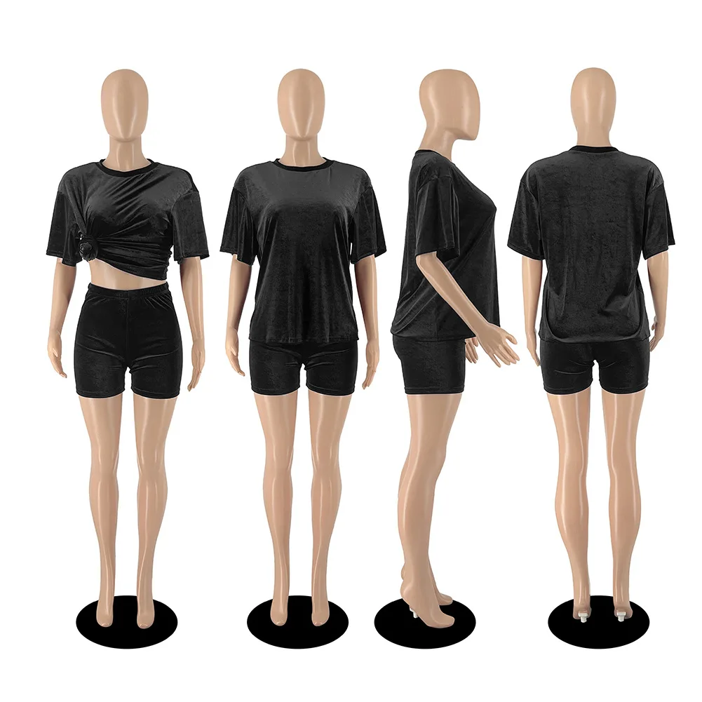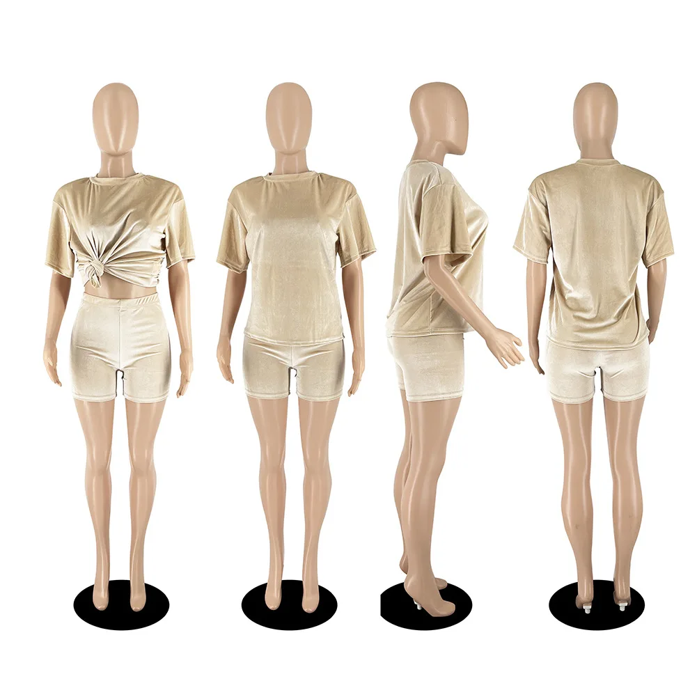 2023 Summer Women Velvet Casual Short Sweatshirts Two Pieces velvet jogging set for women