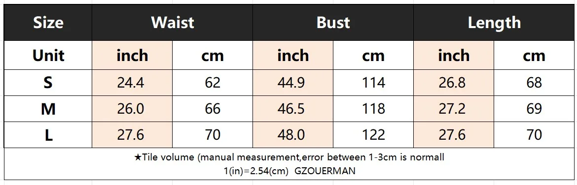 1.Please allow 1-3cm deviation due to manual measurement. 2.Measure the clothes you usually wear but not measure your body to choose size. 3.Choose the right size according to your own measurements combined with our size chart. Attention:Due to the effect of different monitors and cameras, the goods may look a little bit different from pictures shown online. GZOUERMAN |