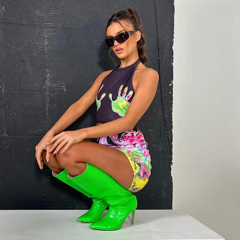 2023 Summer Y2K Print Tops Two Piece Sexy Women Skirts Sets
