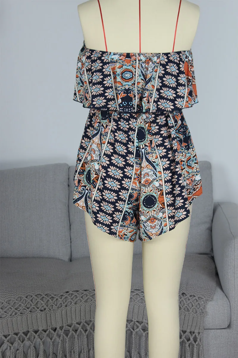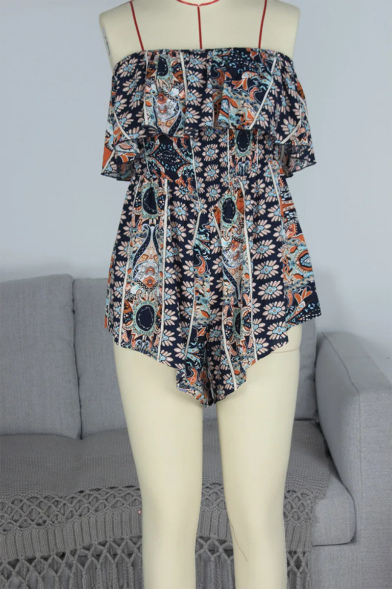 2023 Wholesale Women Fashion Off Shoulder Printed Summer Bohemian Leisure Wide Leg Pants Design Sexy Jumpsuit