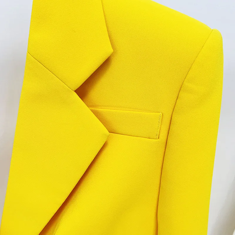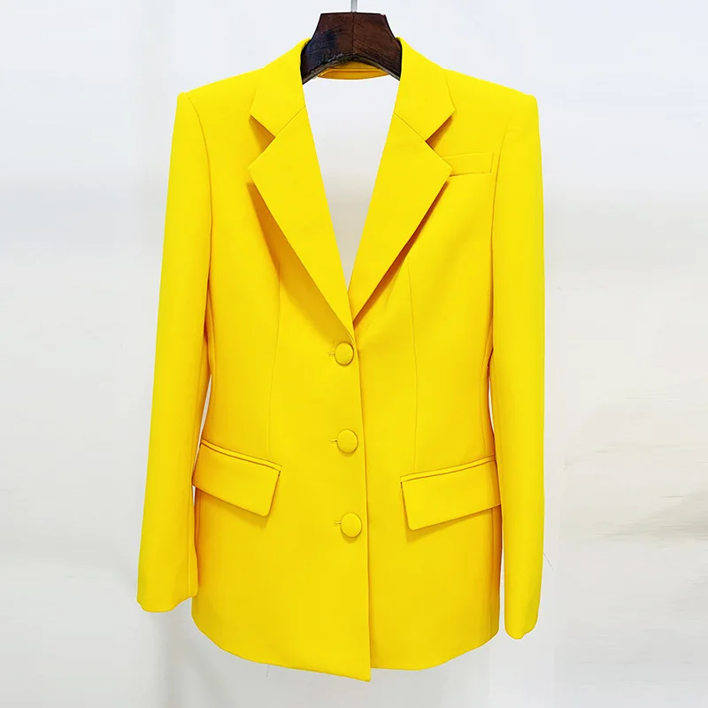 Our Ladies' Mid-Length Suit Jacket is a brightly colored, high-quality garment made from premium suit fabric that resists pilling and wrinkling.