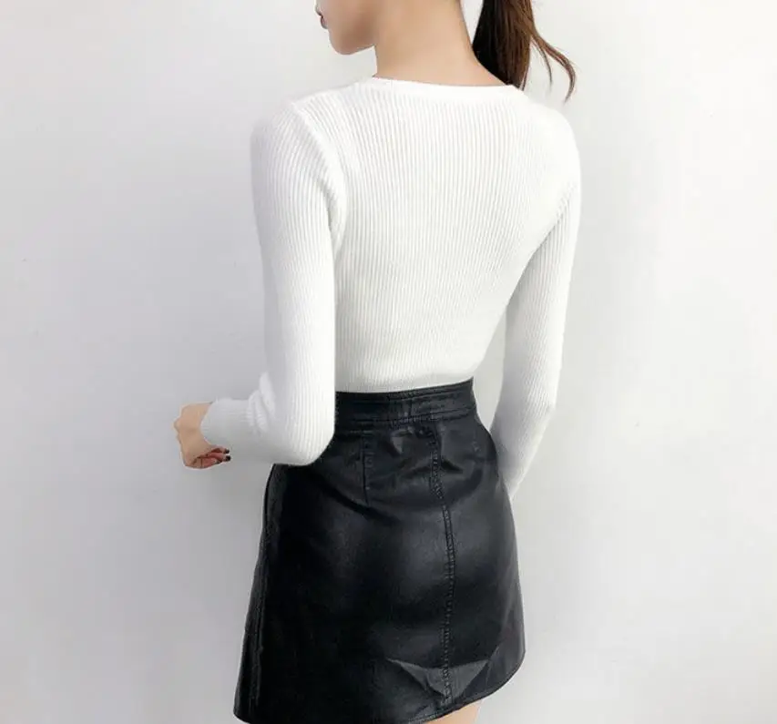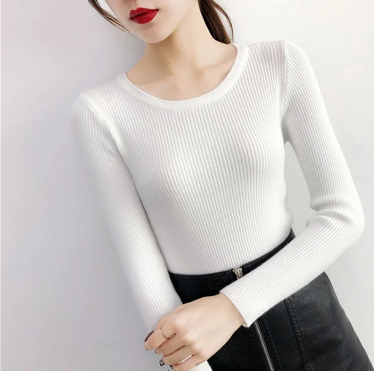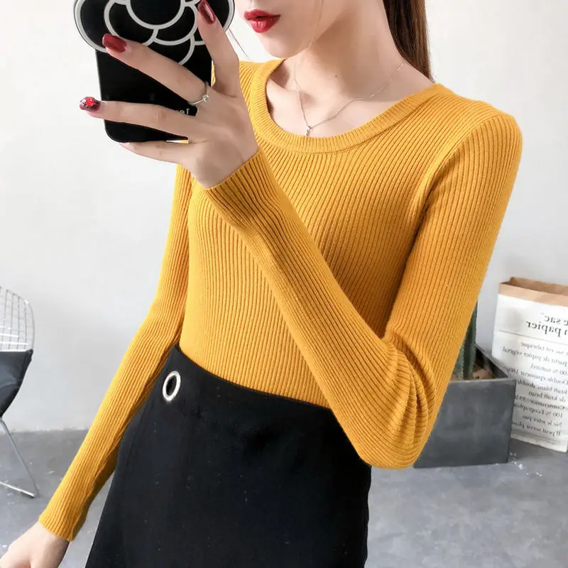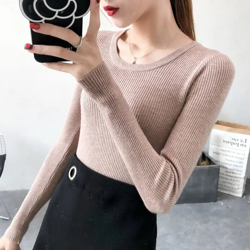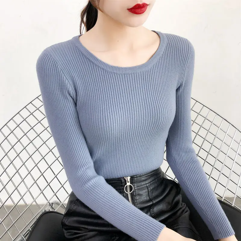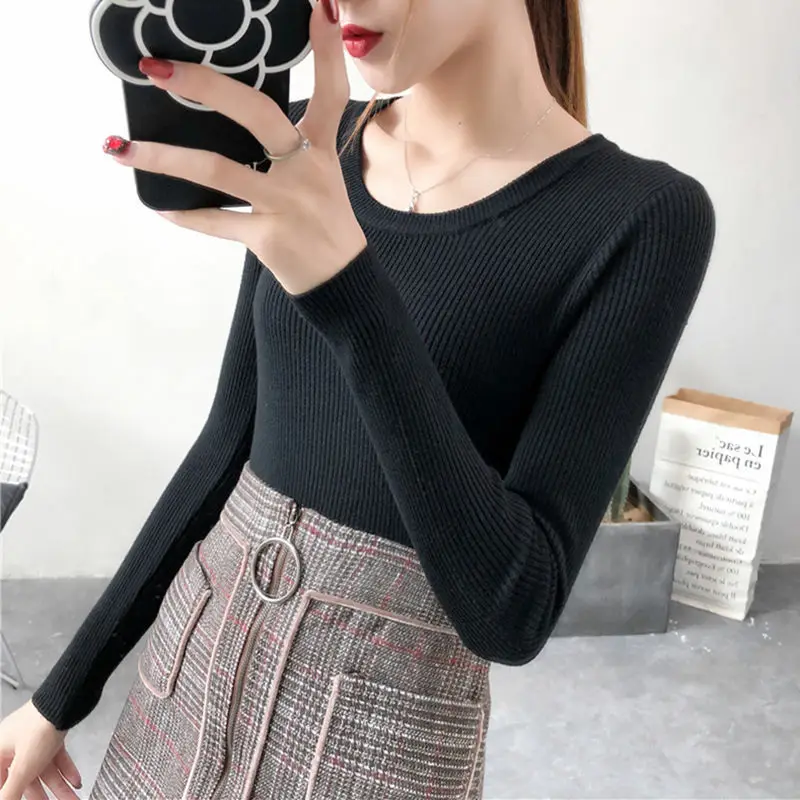 2023 Women Lady Knitwear Round Collar Pullover Base Tops Long Sleeve Solid Color Spring Autumn Knit Slim Casual Sweater