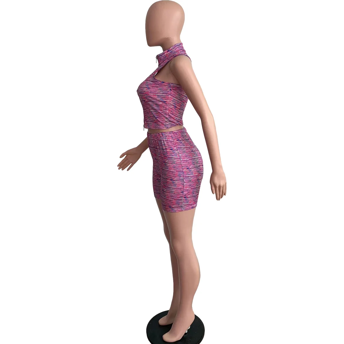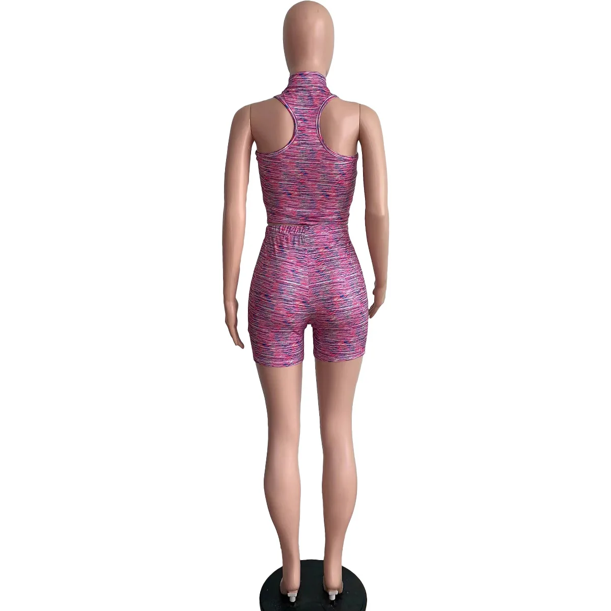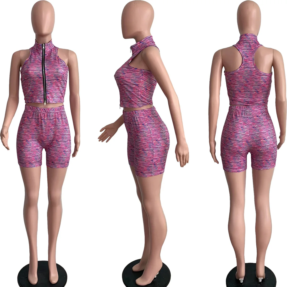 2023 Women Printed Zipper Up Two Piece Summer Tank and Short Workout Outfits 2pc Biker Short Sets For Summer New Arrivals