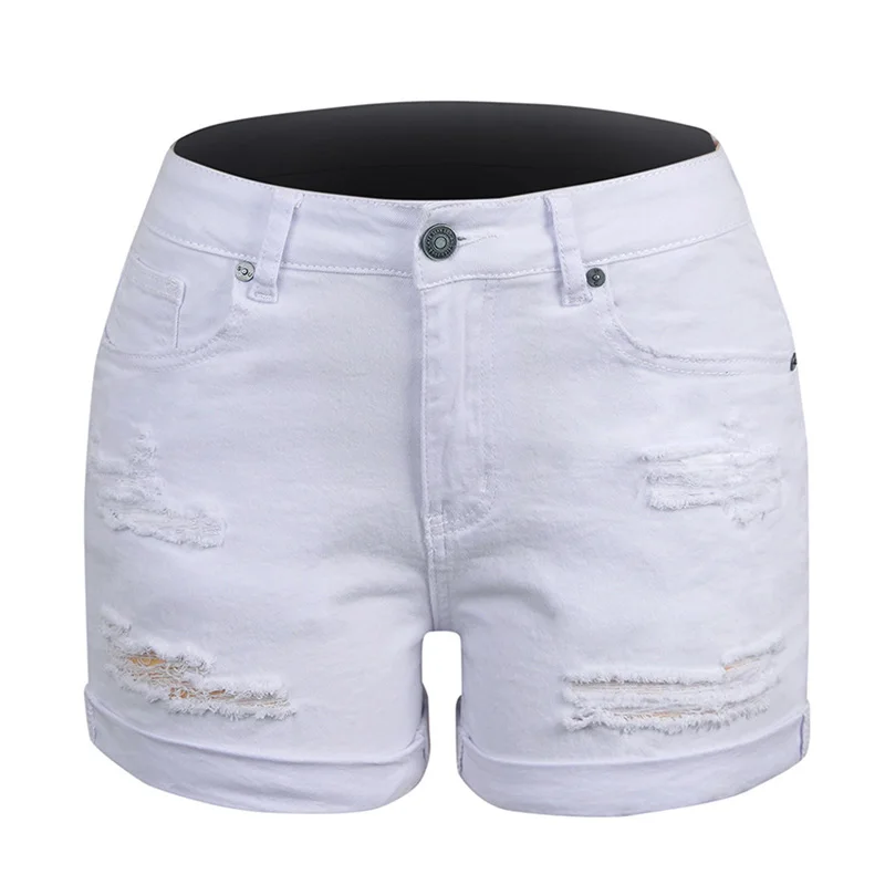 2023 Women Shorts Summer Casual Fashion Vintage High Waist Elastic Stretch Skinny New Ripped Crimping Women's Denim Shorts