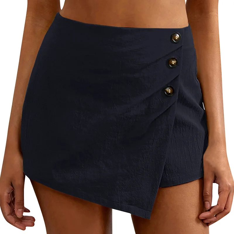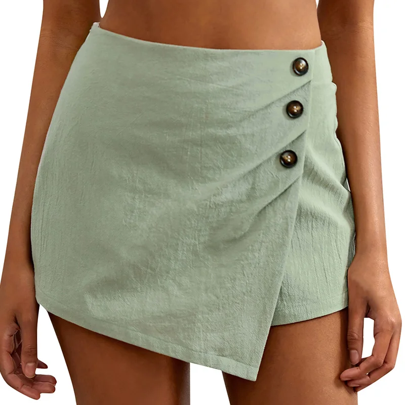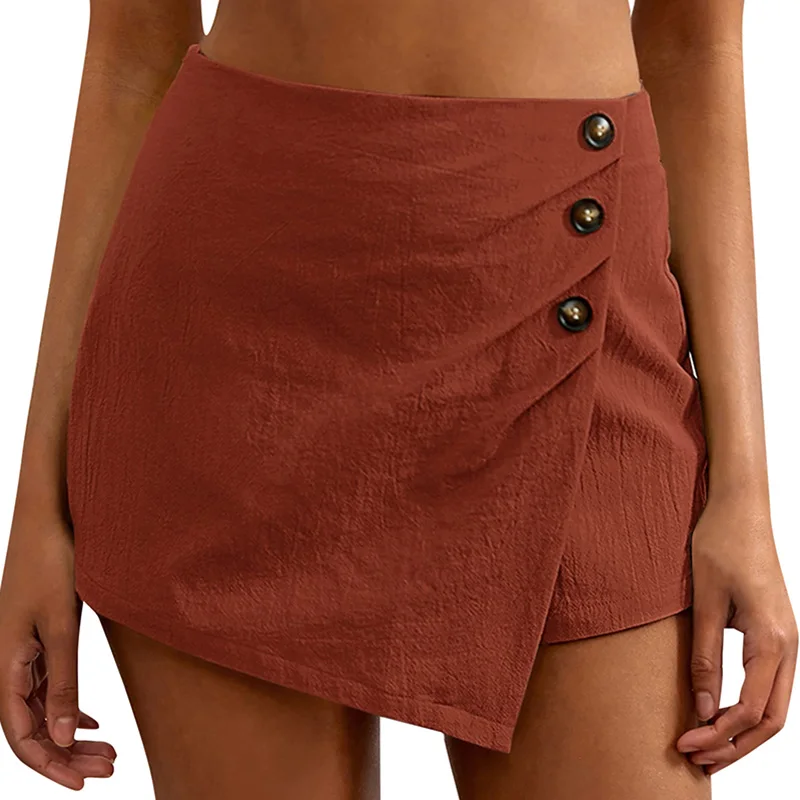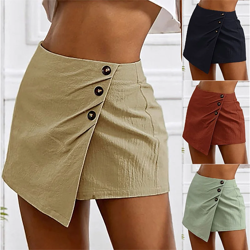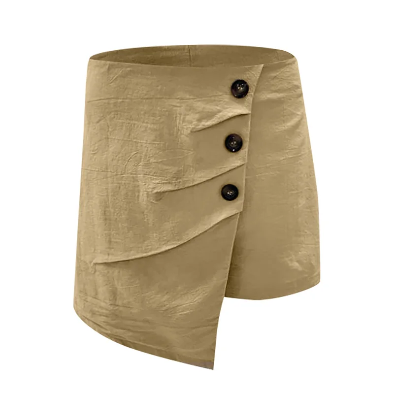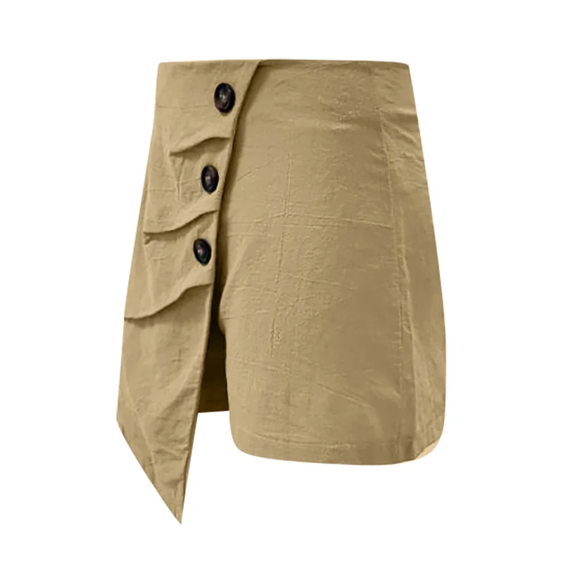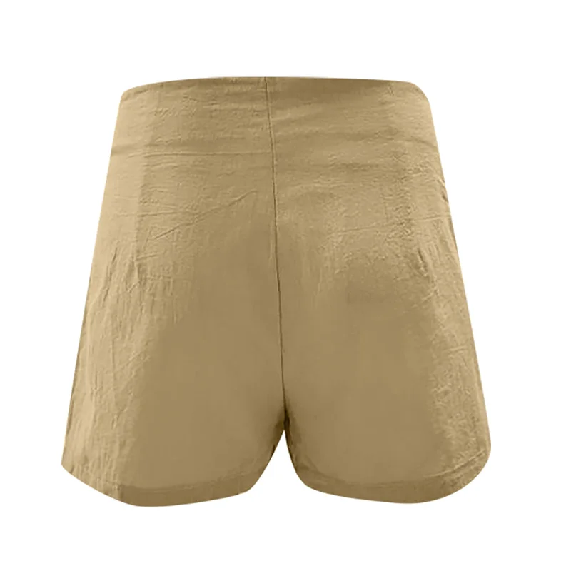 2023 Women Summer Fashion Cotton Linen Buttons Shorts Pure Color Female Casual Loose Culottes Zipper Irregular Shorts