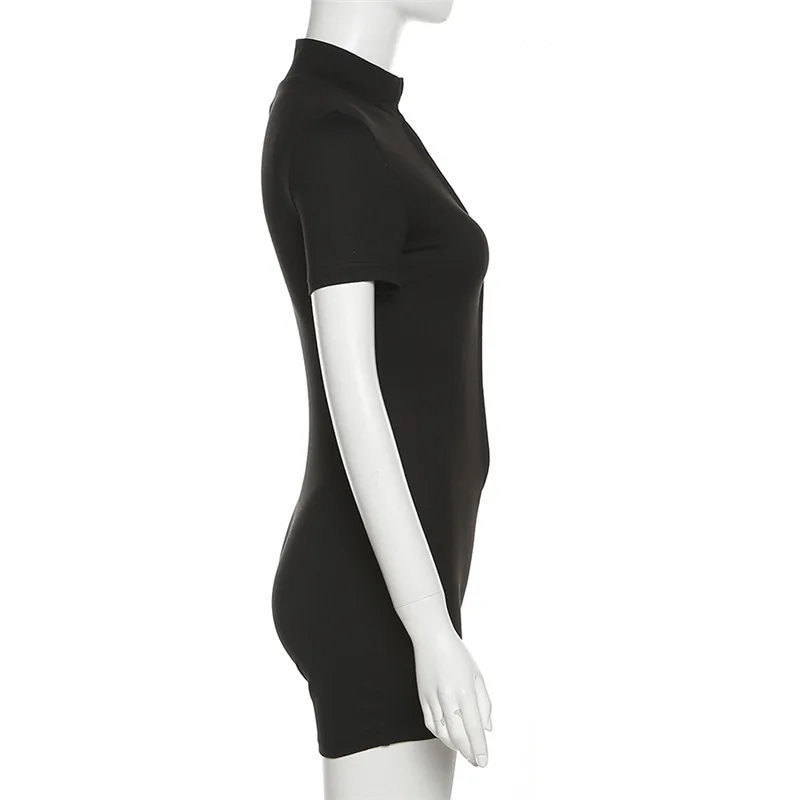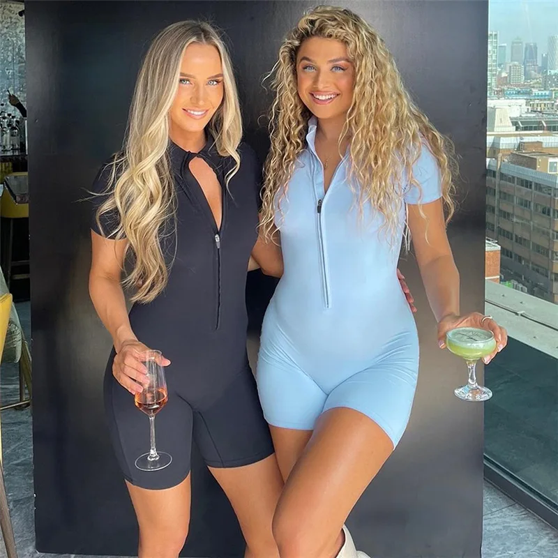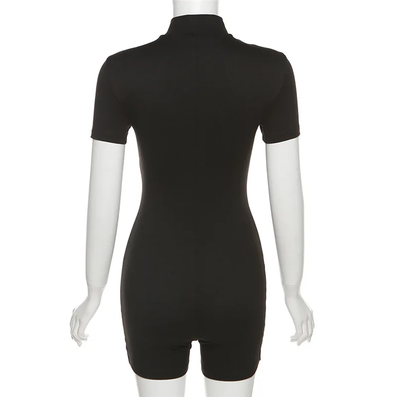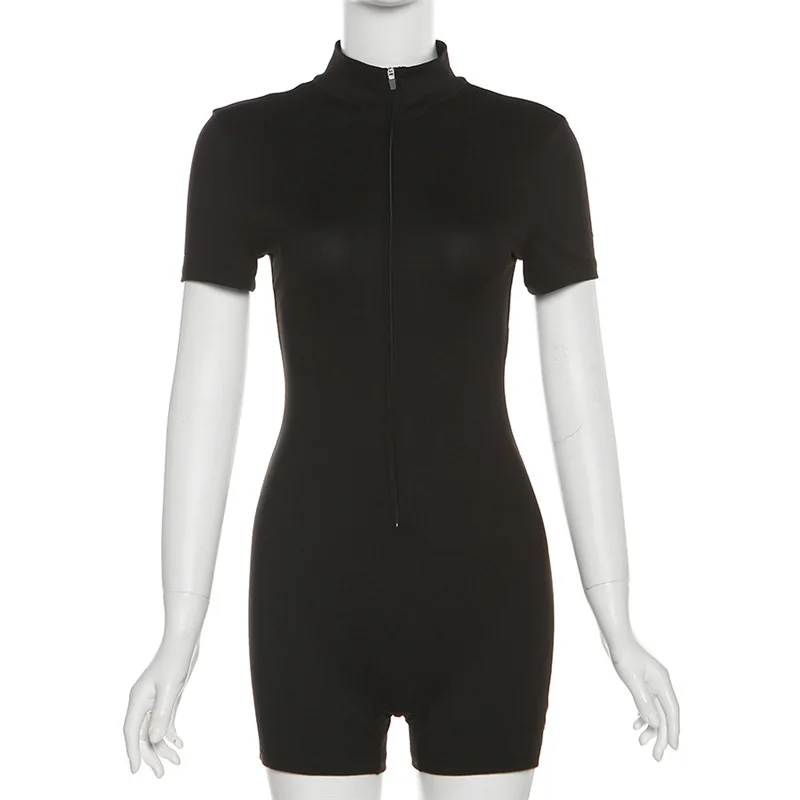 2023 Women's Romper Short Sleeve Tight Solid Zipper Plain Ladies Jumpsuits