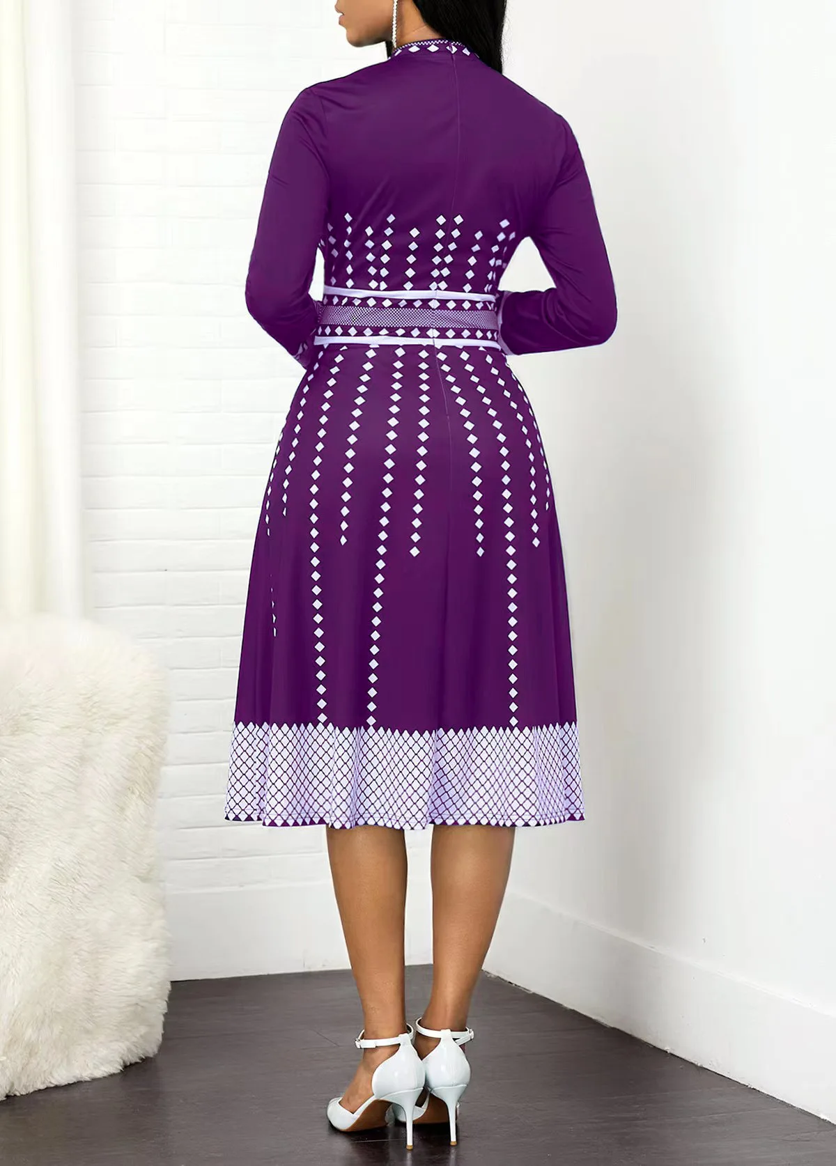 2023 Women's temperament polka dot printed long sleeve retro hip-wrapped A-line large swing slim midi dress