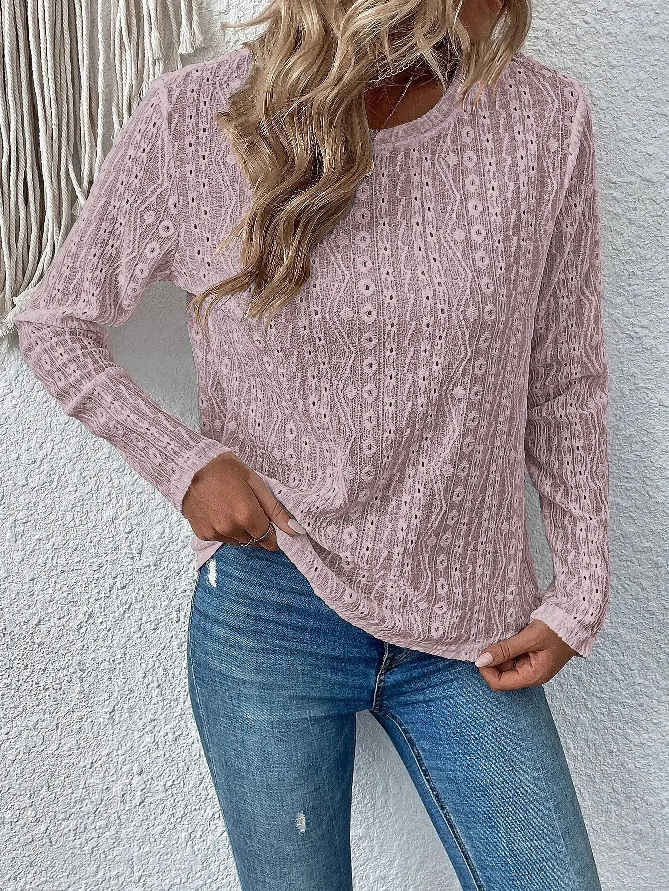 2023 Women's top European and American Round neck Solid color Lace Hollow Leisure T-shirt for Women