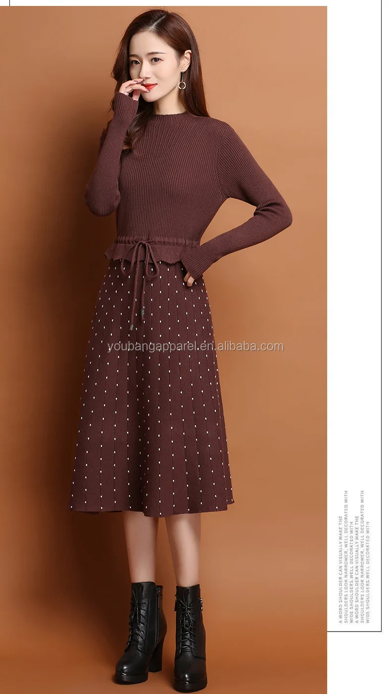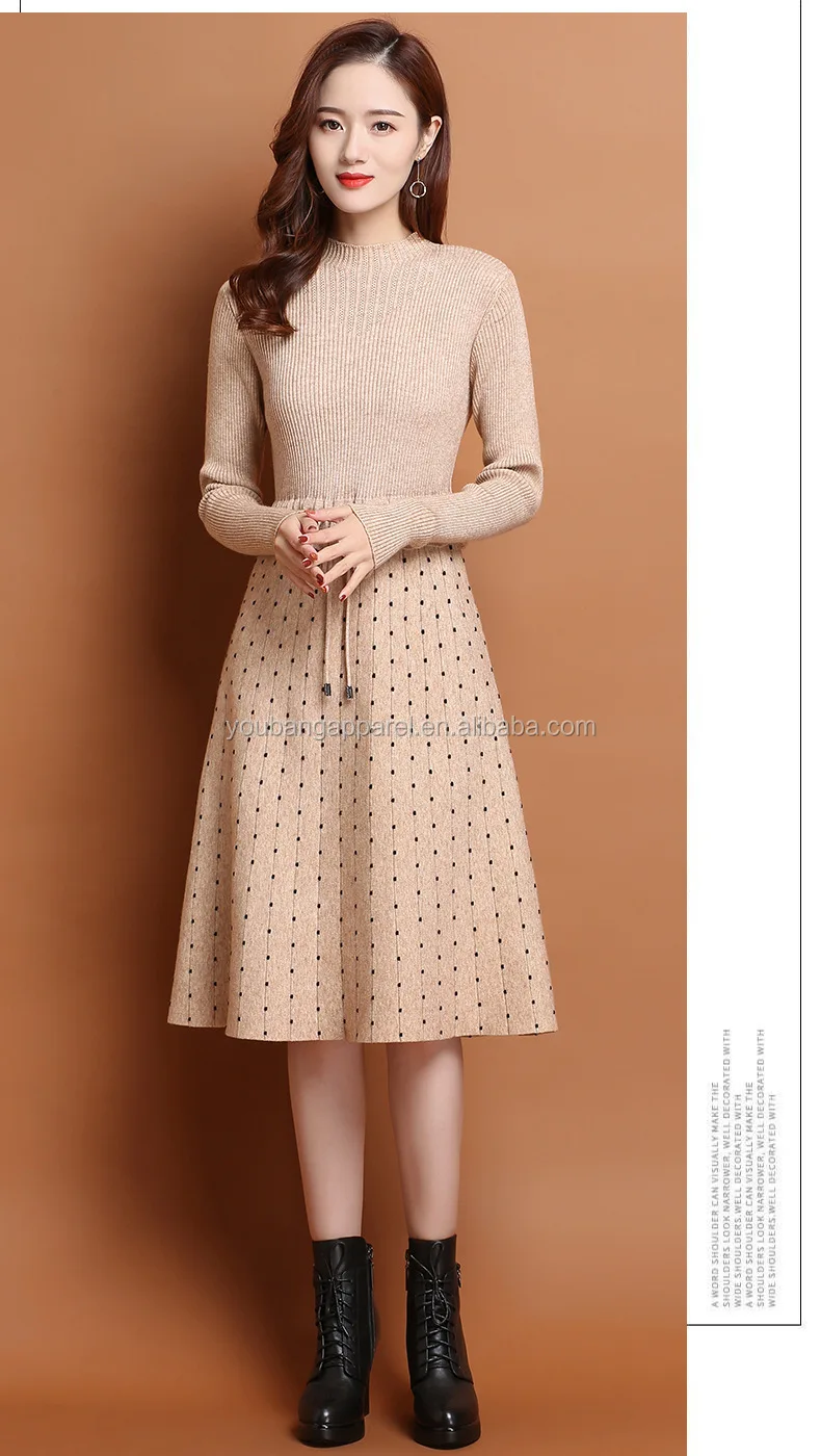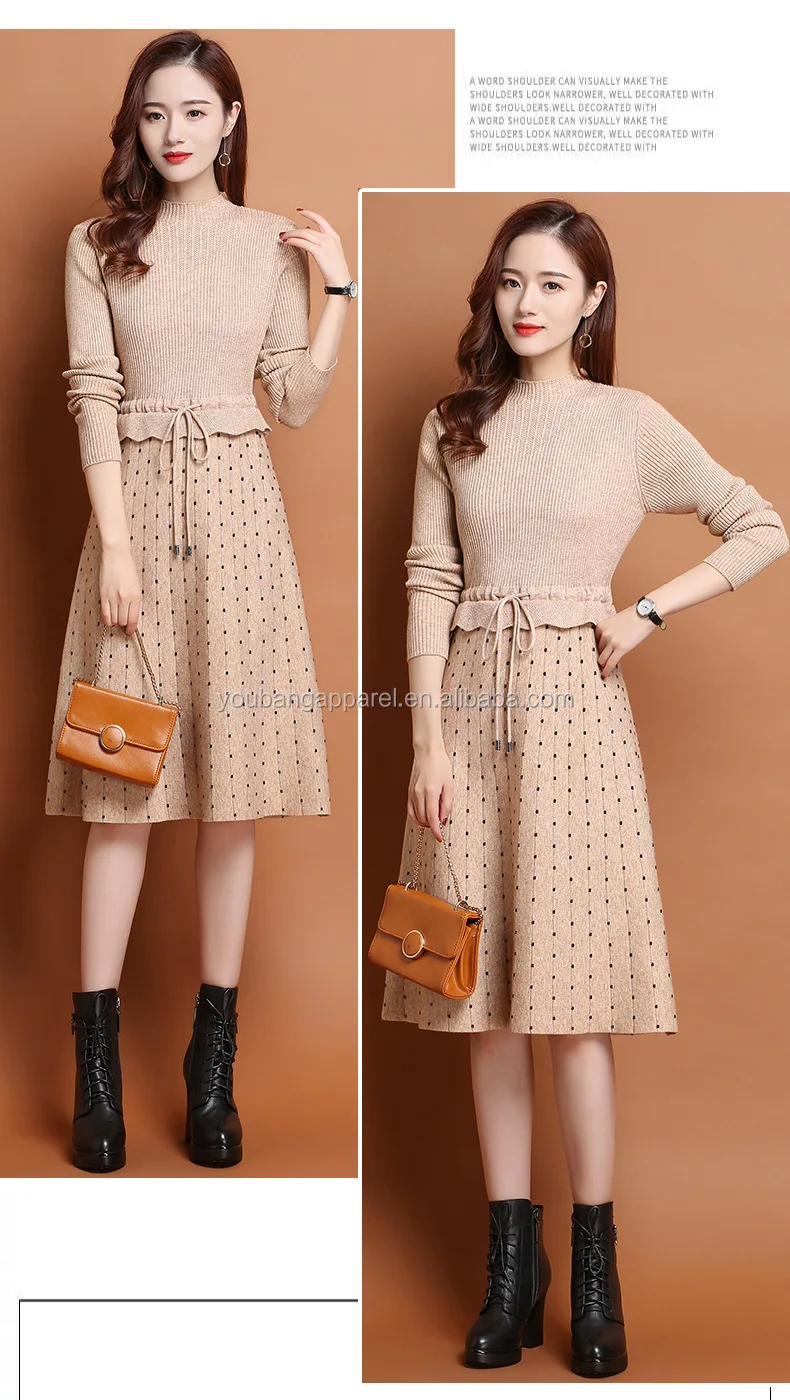 2024 autumn winter new arrival fashion women high neck long sleeve slim fit collect waist soft women sweater dress