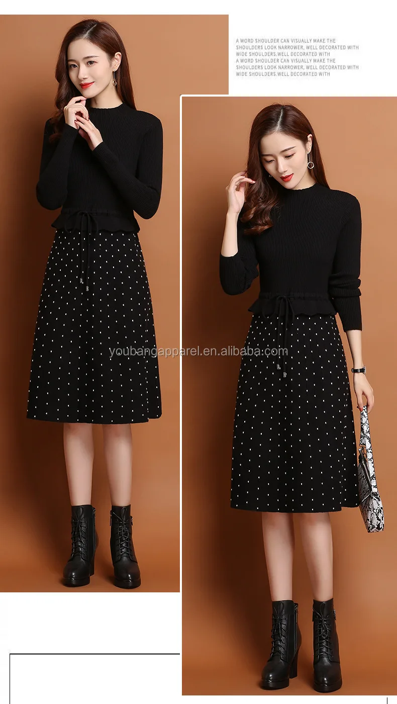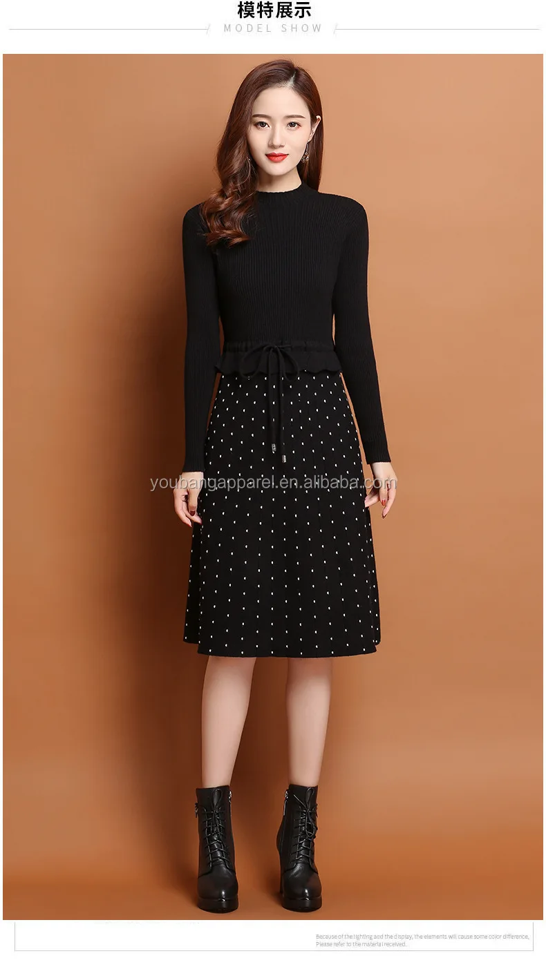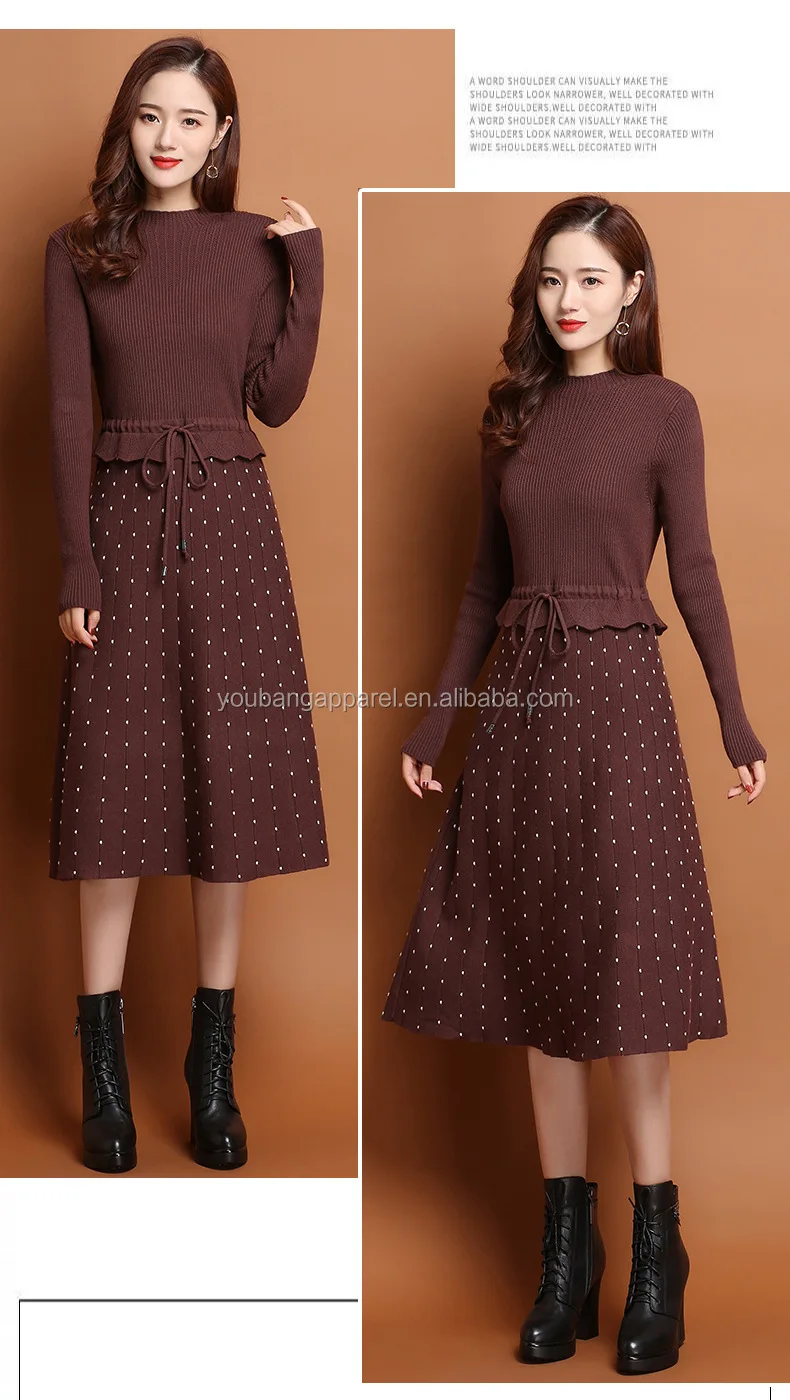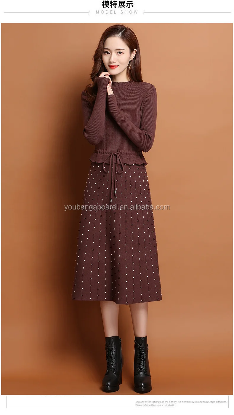 2024 autumn winter new arrival fashion women high neck long sleeve slim fit collect waist soft women sweater dress