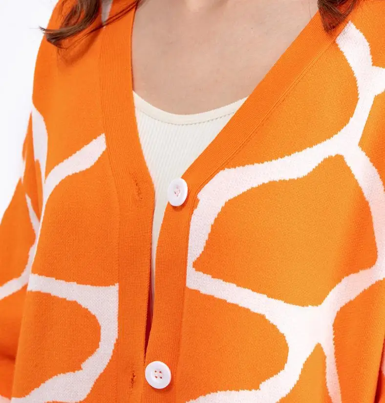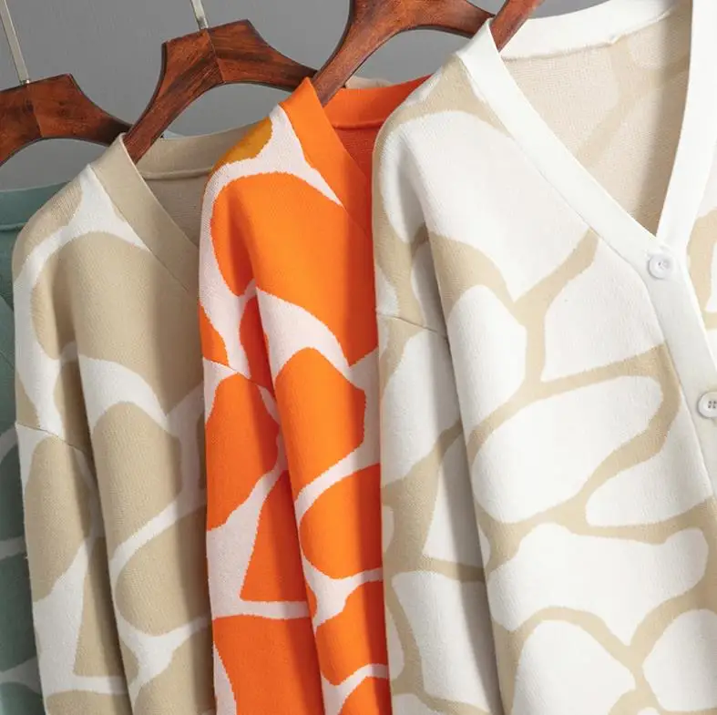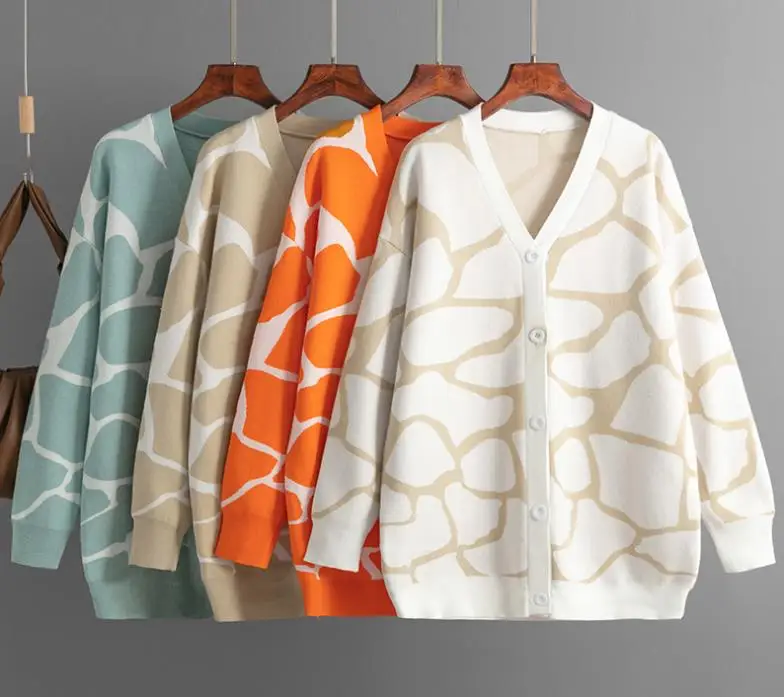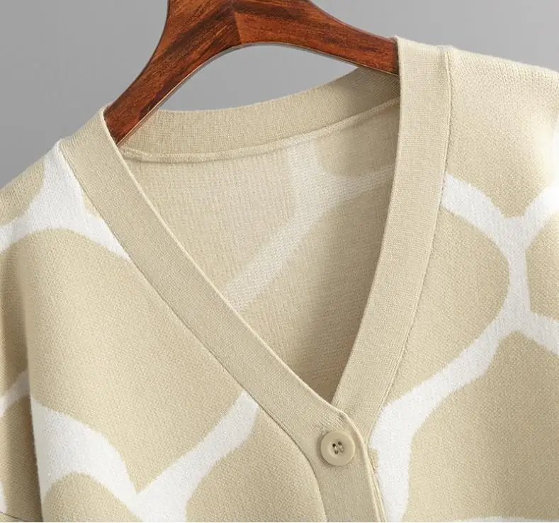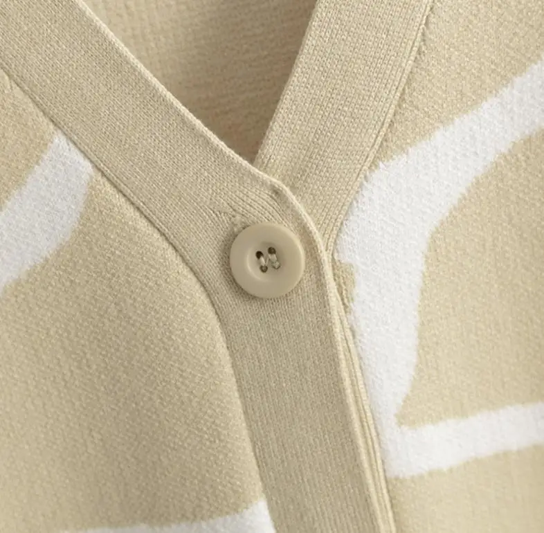 2024 Best-Selling Women Autumn and Winter Line Pattern Cardigan Single Breasted V-neck Long Sleeve Casual Loose Knitted Coat