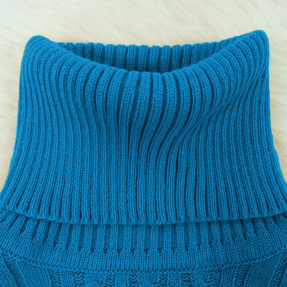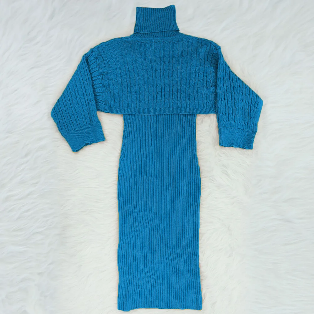2024 Best-Selling Women Autumn and Winter Sweater Set Long Sleeve High-Neck Solid Color Knee Length Dress