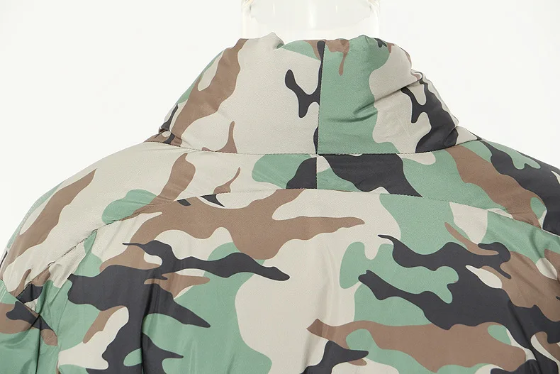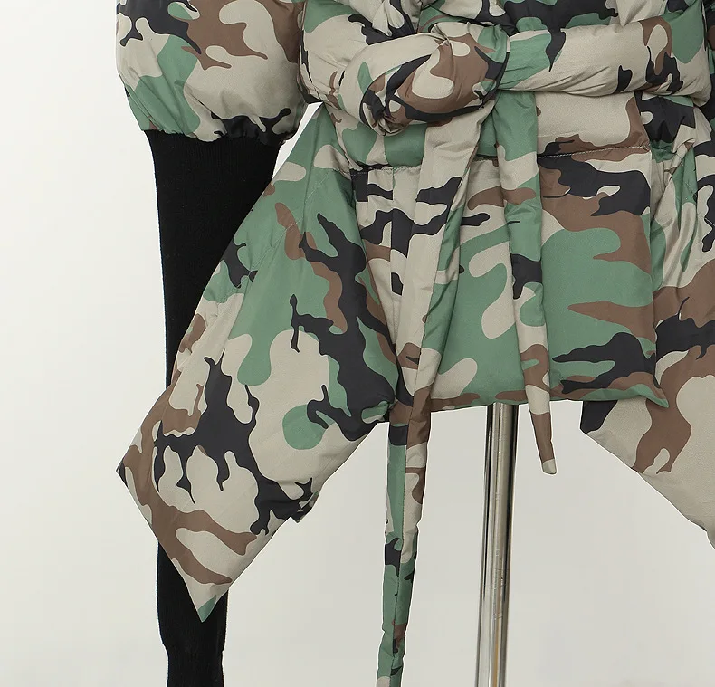 2024 Camouflage Asymmetrical Puffer Jacket Women Winter Clothes Thick Warm Long Sleeve Bow Cotton Down Coat