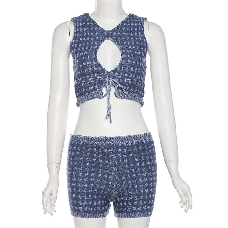 2024 Casual Knit Women's Short Set Loungewear Two Piece Shorts Set