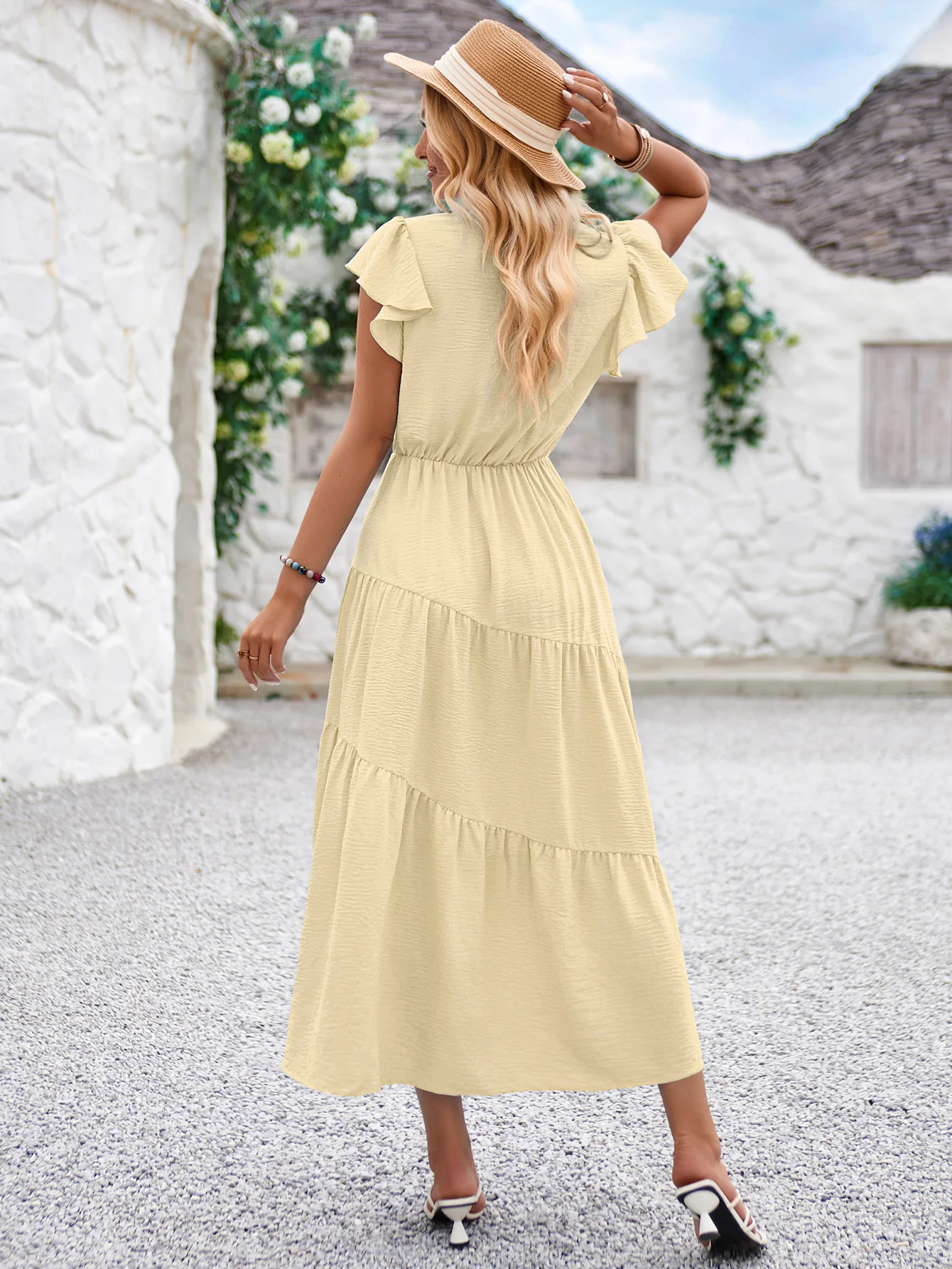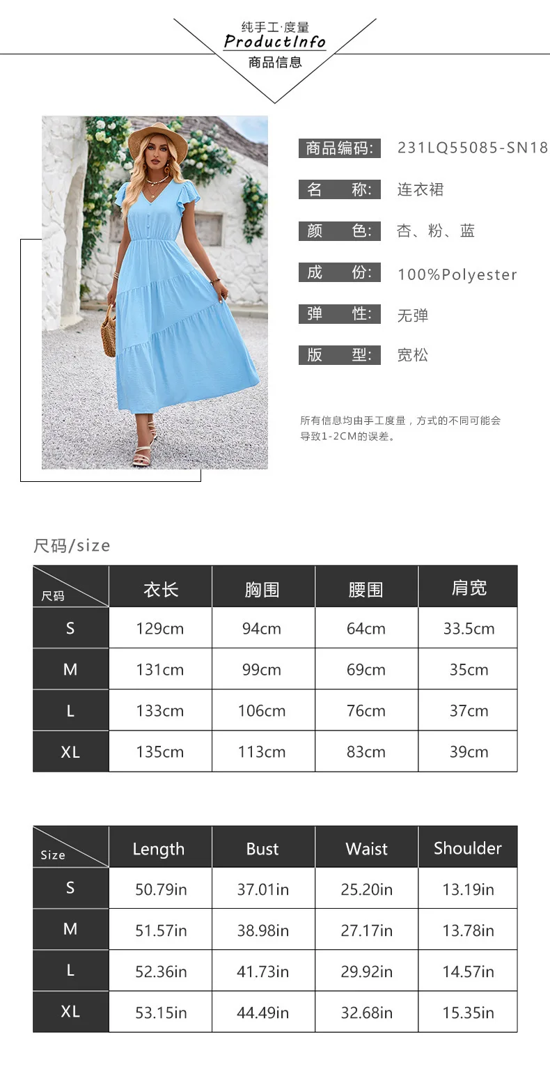 2024 Casual Short Sleeve Deep V Neck Boho plain Midi Dress A Line Long Beach Women's Summer Casual Dress